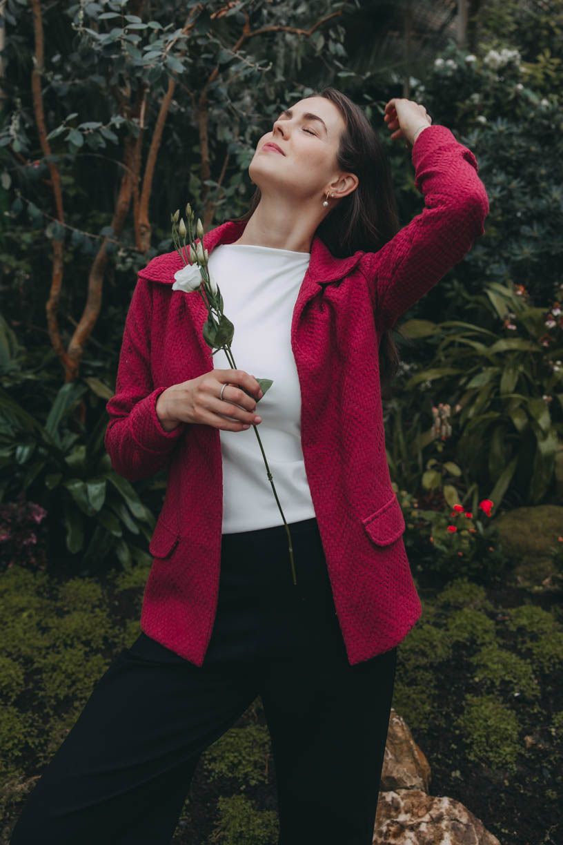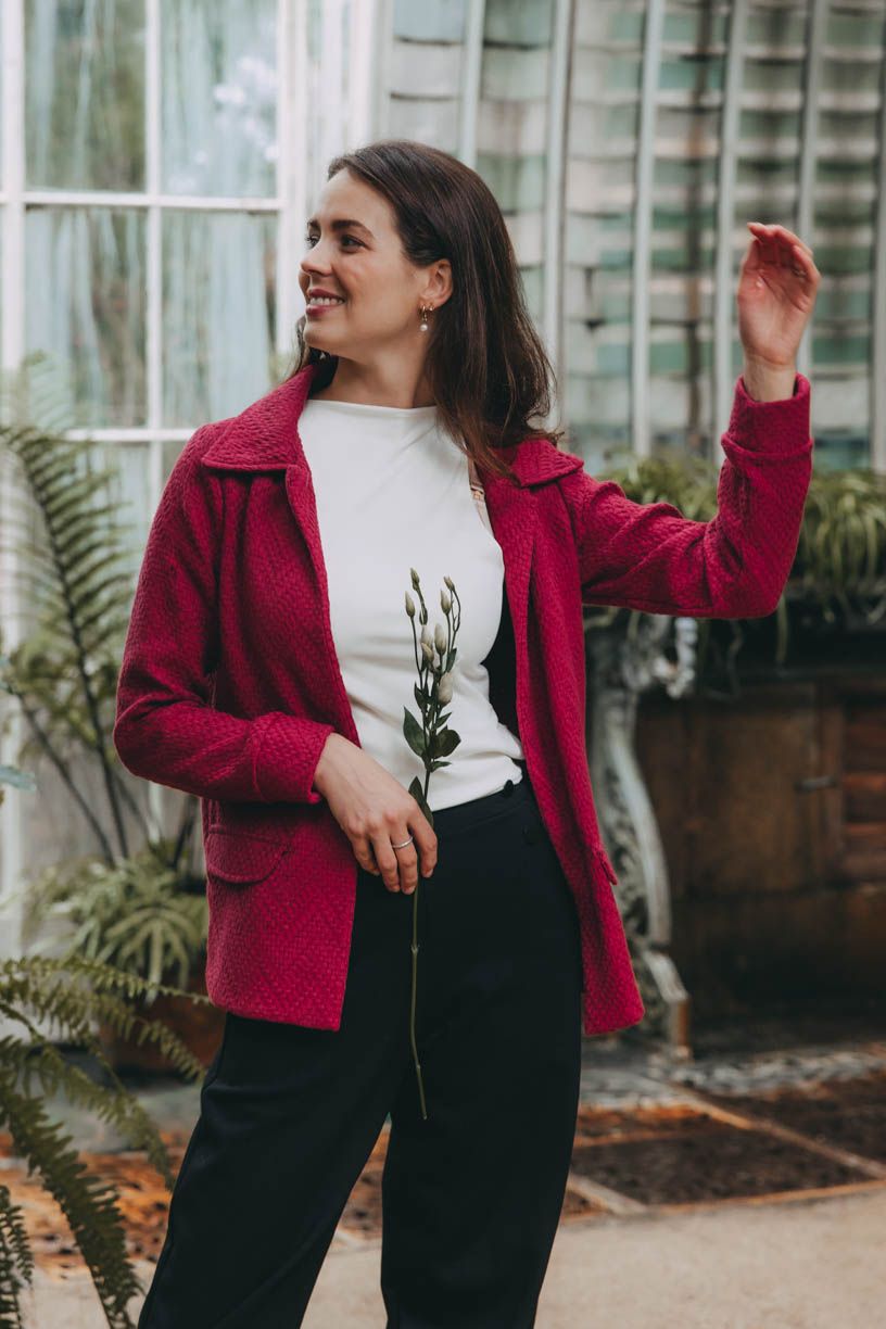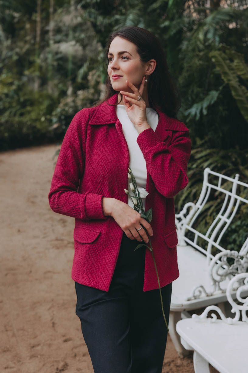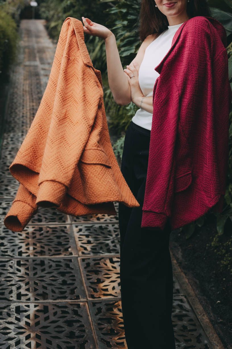 Blejzer Asili je na prvý pohľad elegantný klasik, ale akonáhle sa naň pozriete lepšie, vidíte, že si robí veci po svojom. Textúrovaný materiál, ktorý vyzerá ako prepletená štruktúra vlákien, pridáva hĺbku a originalitu.