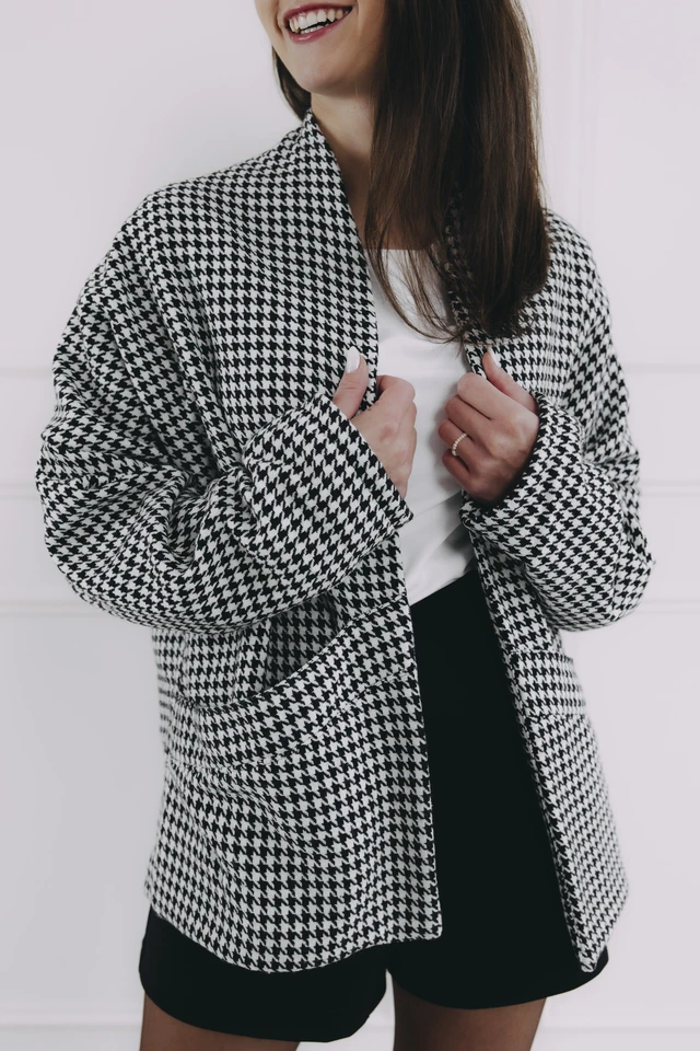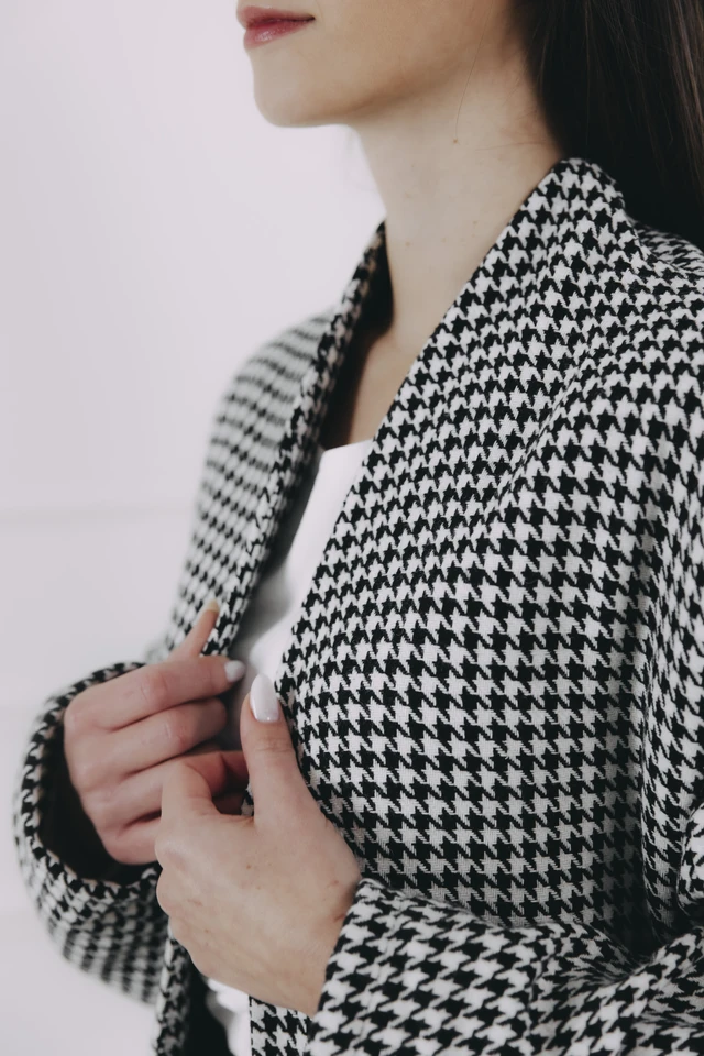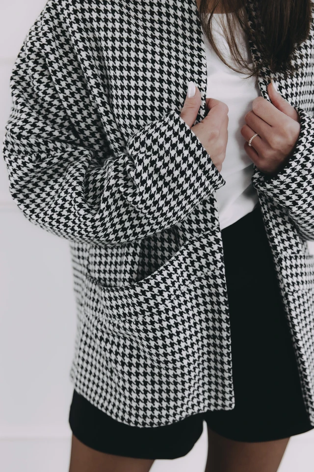 Vďaka svojmu elegantnému vzoru kohútej stopy a vysokej gramáži sa okamžite stane vaším spoľahlivým spoločníkom na každý deň.