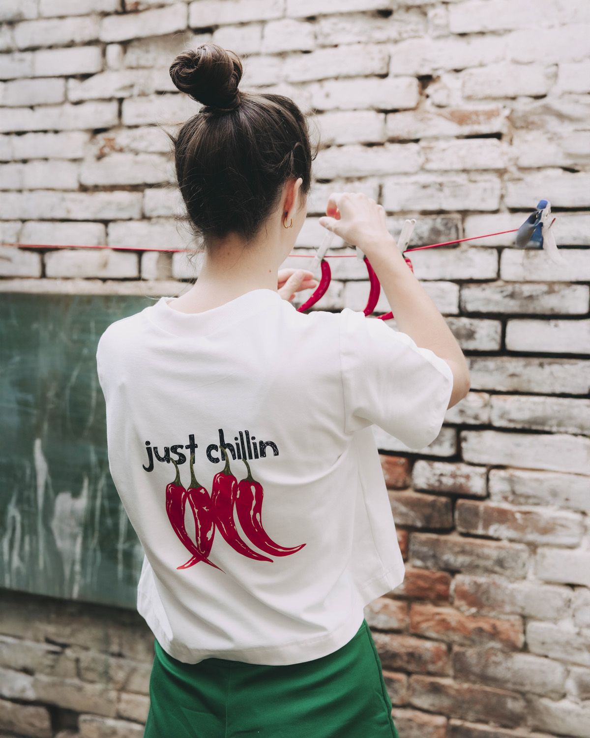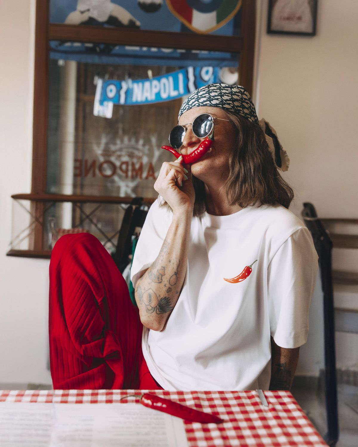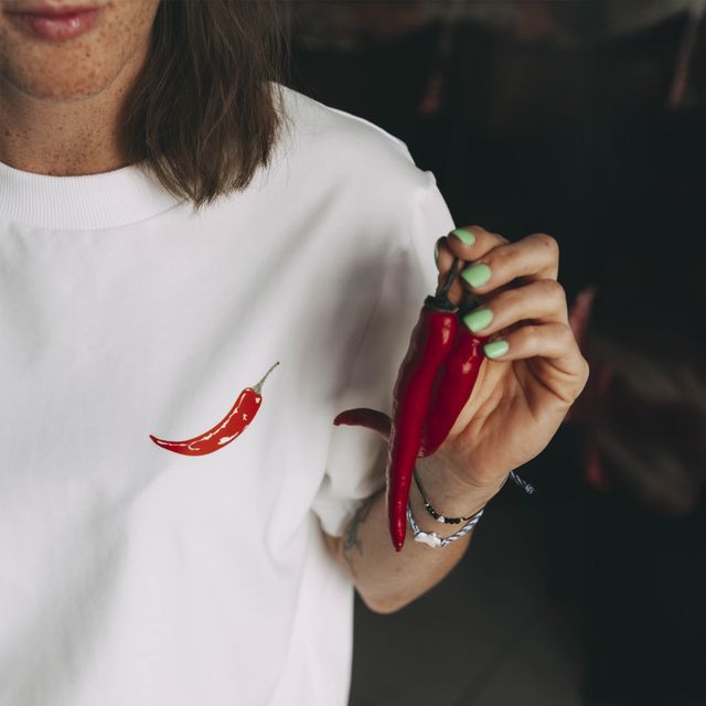 Tričko s feferónkami a textom „just chillin“ je presne to, čo potrebujete na letné dni – trochu korenia, trochu pohody. Navonok pokojná, vo vnútri rozpálená. Sršiaca vtipom, iróniou, sarkazmom. Nenecháte sa rozhodiť. Pretože si na to nikto netrúfne.
