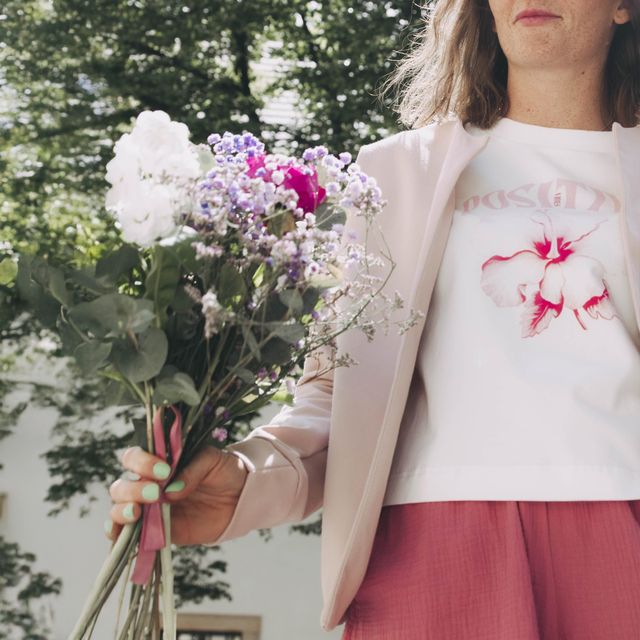 Toto tričko rozkvitne za vás. Respektíve vy v ňom. Aj keď práve nie je slniečkový deň, veľký ibištek na prsiach sa zvládne usmievať. Pre chvíle, keď si len stačí pripomenúť, že svet je fajn – a vy ešte viac.