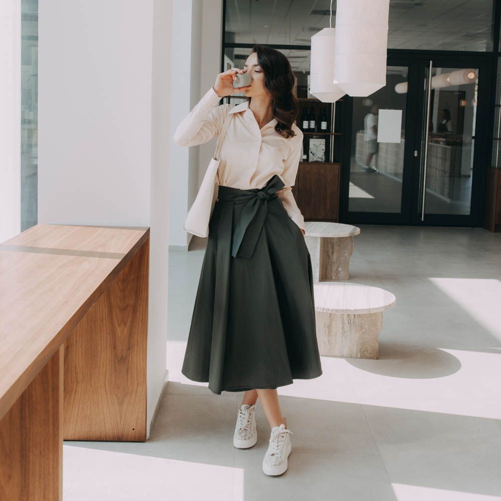 Vedeli ste, že spojenie elegantnej midi dĺžky, áčkového strihu a zvýrazneného pásu prvýkrát očarilo svet už na konci 40. rokov? Vtedy túto siluetu preslávil Christian Dior a odvtedy sa stala symbolom ženskosti, ktorý z módy skrátka nikdy nevyjde. Aj po takmer 80 rokoch vládne našim šatníkom s rovnakou eleganciou a gráciou. Sukňa Mawe na tento slávny príbeh nadväzuje, ale dáva mu modernú tvár.