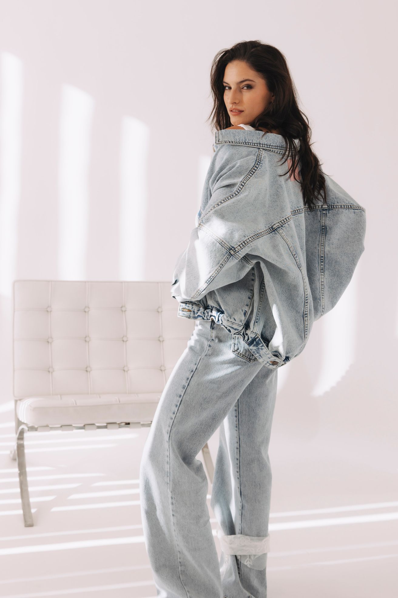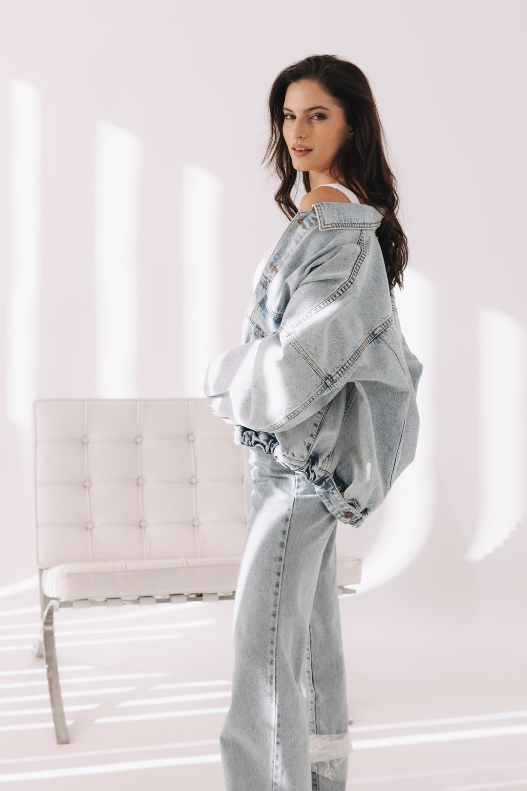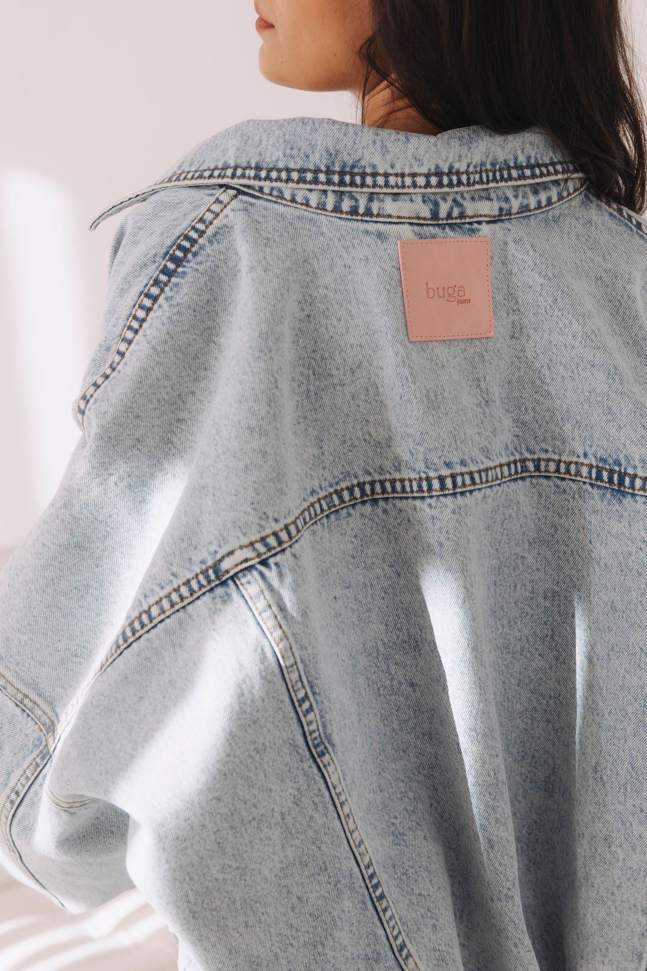 - Materiál: 100 % bavlna. Ľahký, priedušný denim s jemne opraným efektom, ideálny na prechodné obdobie aj letné dni. Drží tvar, no zostáva mäkký a príjemný na dotyk. Kvalitná tkanina zaručuje dlhú životnosť aj nadčasový vzhľad.