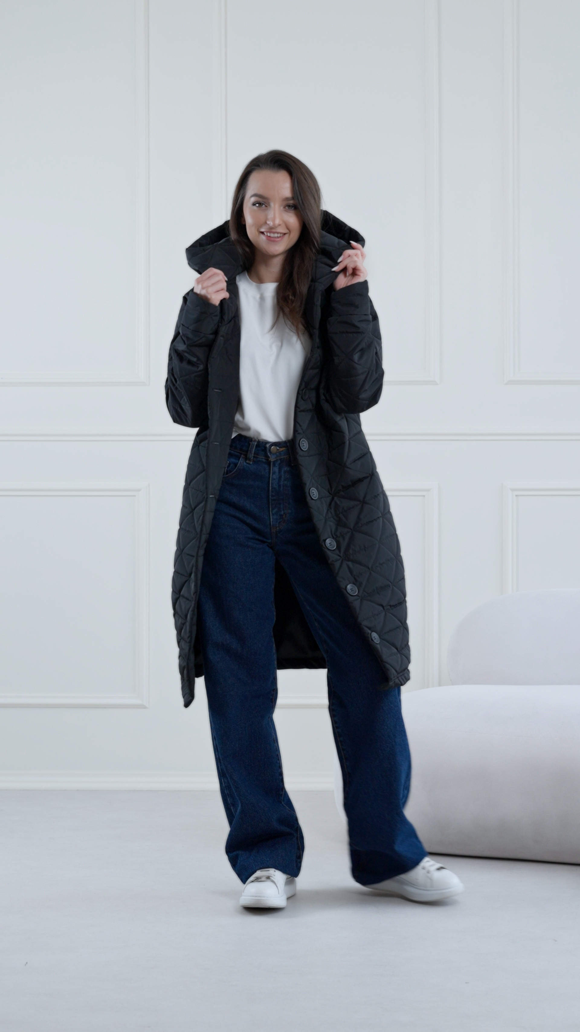 Kabátik si skvele rozumie s vysokými čižmami, chelsea topánkami aj so zateplenými sneakers. Nebojte sa pridať zimné doplnky - šály, nákrčníky aj čiapky sú viac ako dovolené, sú výslovne odporúčané.