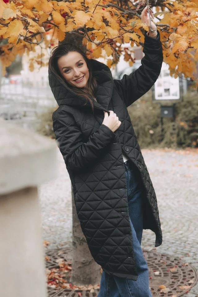 Kabát je zateplený vatelínom (umelé vlákno), ktoré poskytuje ideálnu izoláciu pred chladom. Práve vatelín zaisťuje, že vám v kabáte bude príjemne, a to aj v chladných dňoch. O ľahké obliekanie na svetre sa postará hladká vnútorná podšívka.