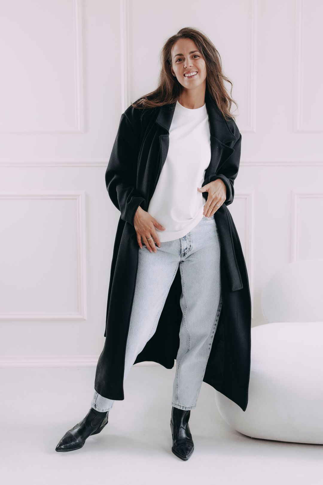 Predstavte si piatkové popoludnie. Dvere kancelárie sa zatvoria a kabát Sumu Black s vami plynulo prechádza z pracovného režimu do voľného večera. S každým krokom sa v ňom cítite voľnejšie a pripravenejšie. Nech vás čaká akákoľvek povinnosť – napríklad víkendový nákup – alebo čistá radosť, ako keď si po ceste po kávu potajomky skočíte na koláčik, tento nadčasový čierny kabát vás podrží. Zvládne s vami jesenné prechádzky aj zimné plieskanice, bez toho, aby ste sa museli vzdať elegancie. Jeden dlhý kabát s opaskom, nekonečno možností.