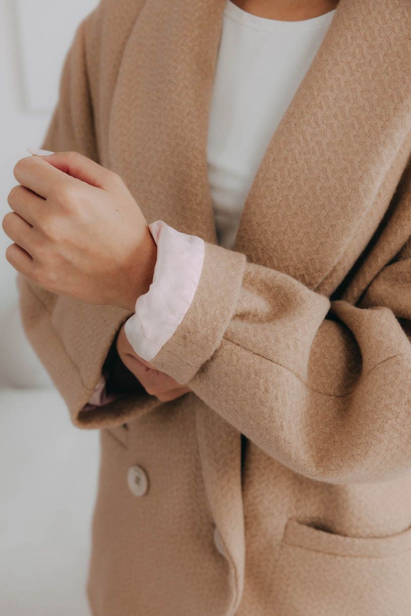 Oversized kabátik Tawil dodá šmrnc každému outfitu bez toho, aby uberal na elegancii. Neutrálna béžová farba pôsobí mladistvo a skvele sa kombinuje.