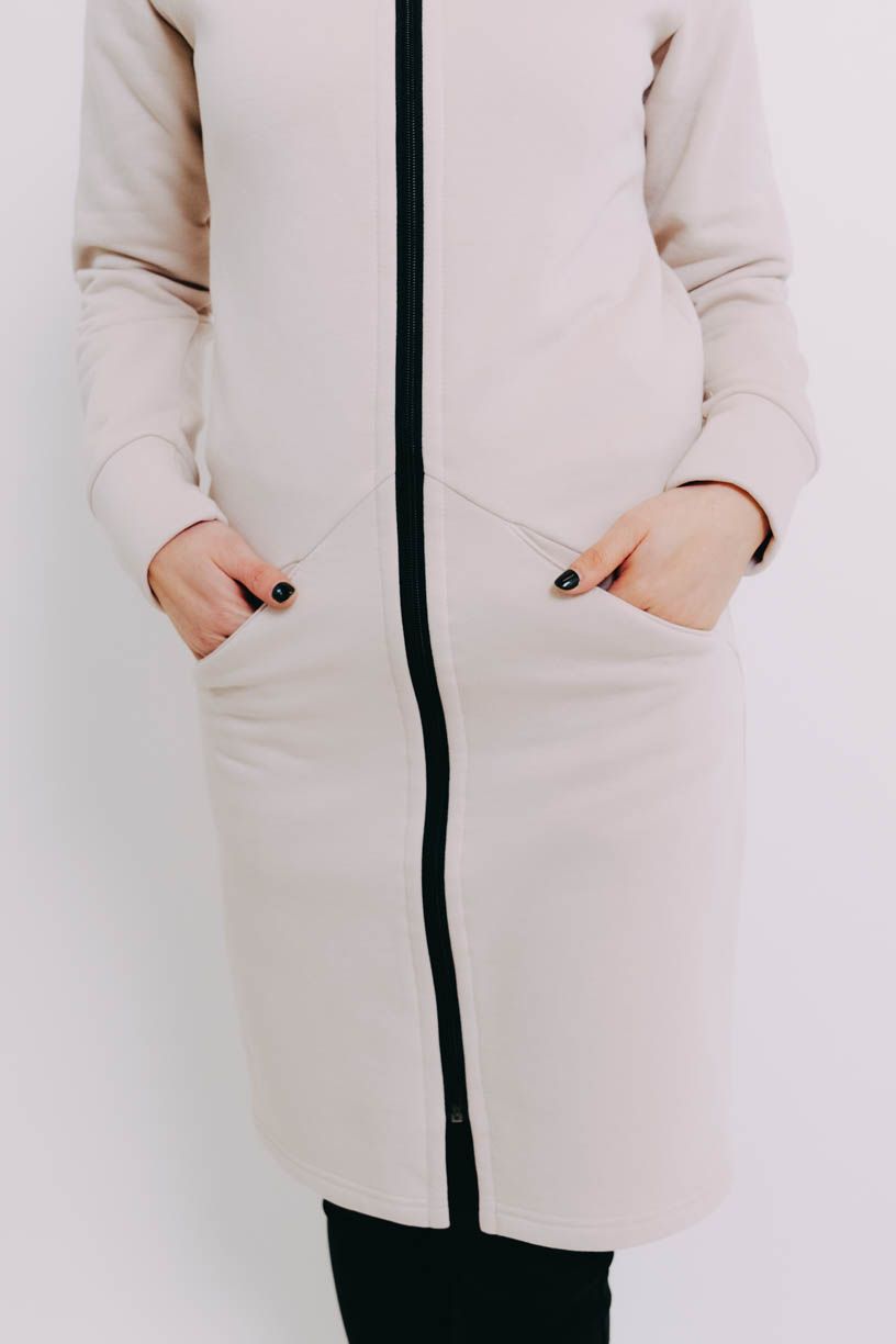 Krémový mikinový kabátik na zips Dada je celoročný kúsok, ktorý využijete ako vrchnú vrstvu, aj ako hrejivý základ pod dlhú bundu či vestu.