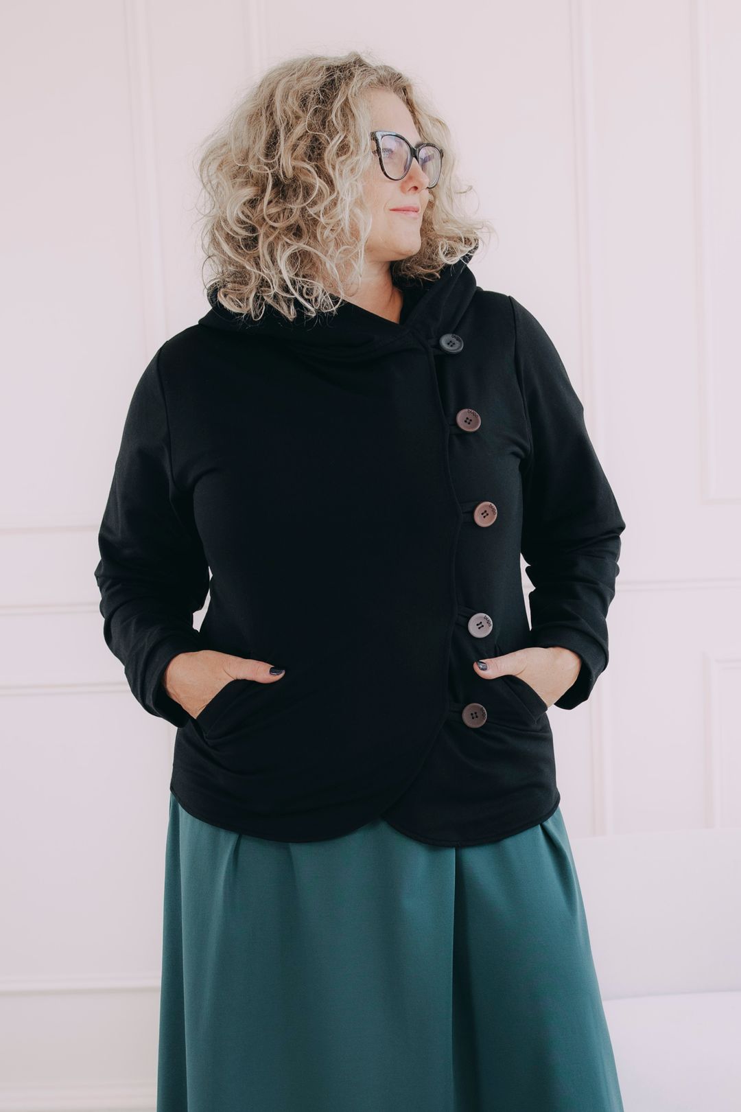Ušili sme ho na vaše prianie z bavlny a elastanu, ktorá vás zahreje v chladných jarných dňoch a zároveň vám dodá elegantný štýl. Čierna farba je nadčasová a dokonale zapadne do akéhokoľvek outfitu – skvele sa kombinuje s jemnými pastelovými tónmi, ale aj s kontrastnou čiernou alebo karamelovou.