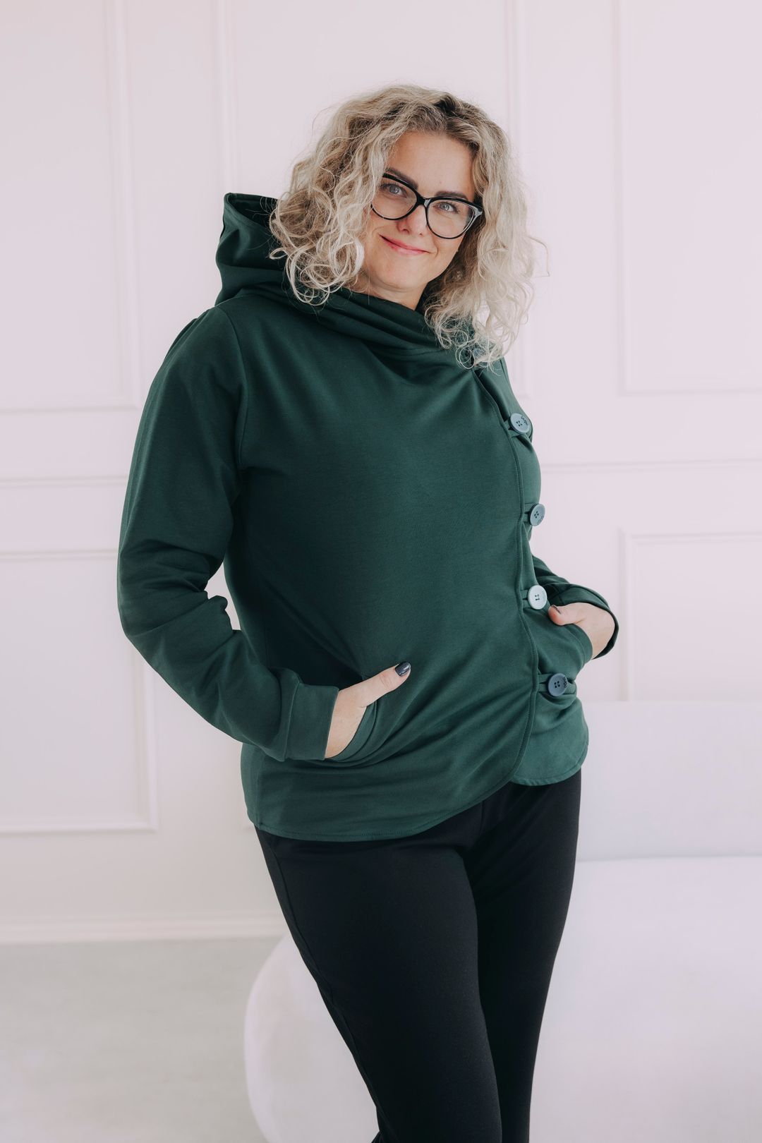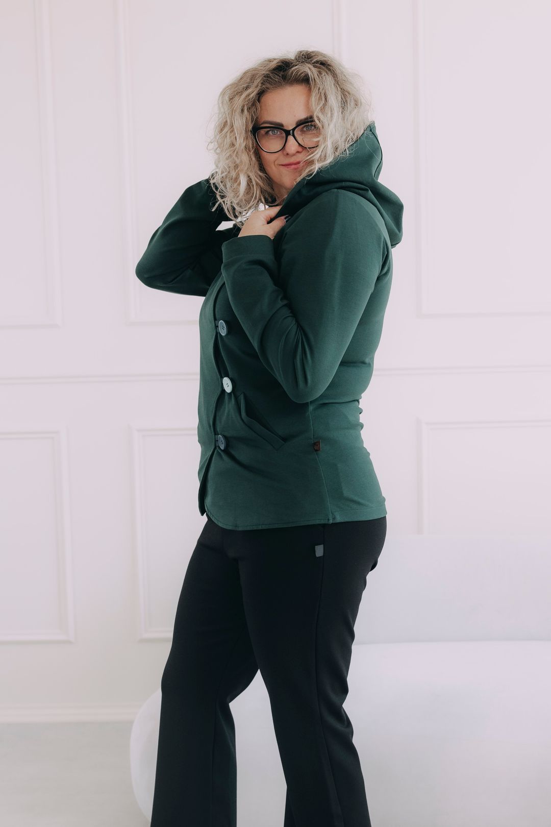 Ušili sme ho na vaše prianie z bavlny a elastanu, ktorá vás zahreje v chladných jarných dňoch a zároveň vám dodá elegantný štýl. Zielena farba je nadčasová a dokonale zapadne do akéhokoľvek outfitu – skvele sa kombinuje s jemnými pastelovými tónmi, ale aj s kontrastnou čiernou alebo karamelovou.