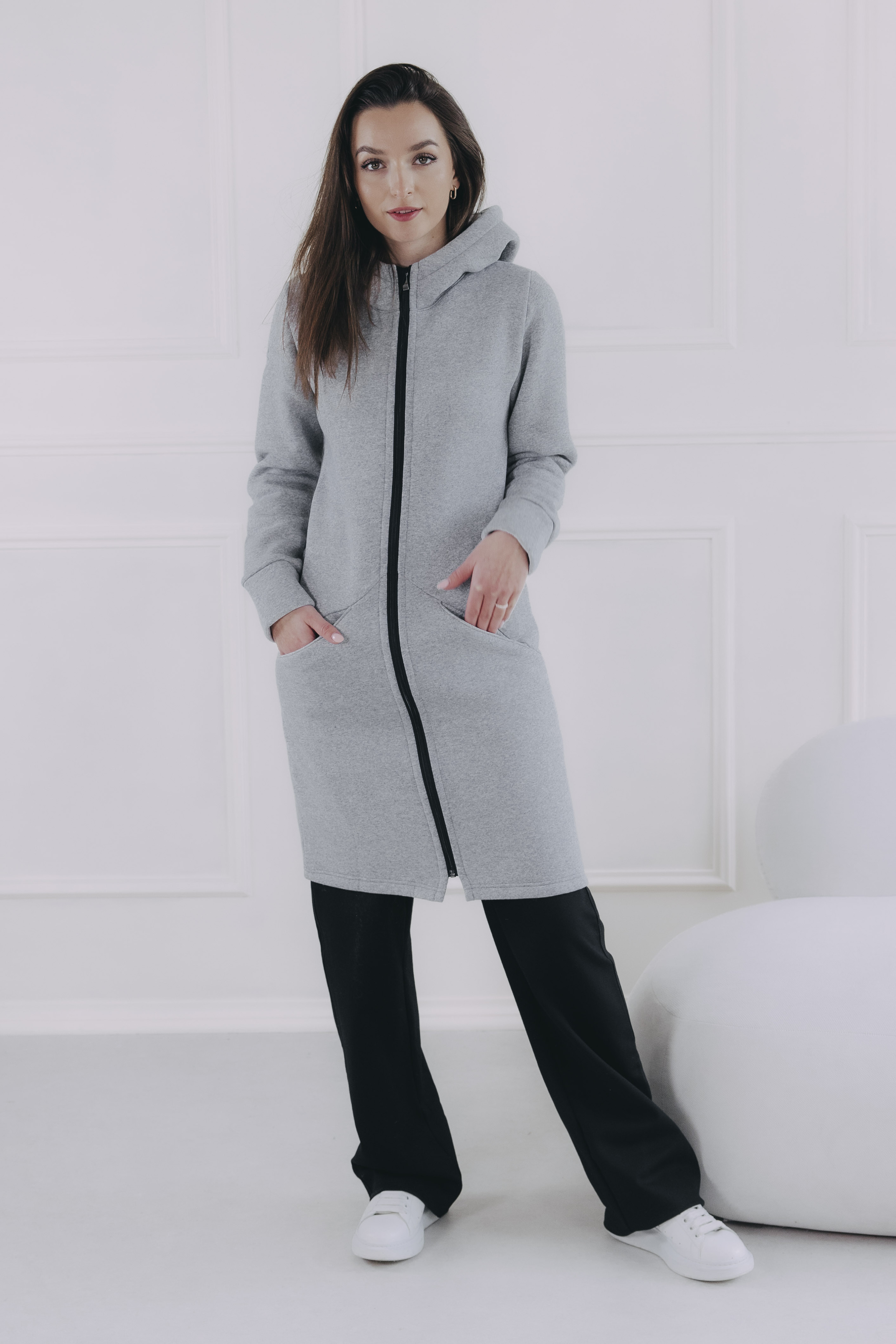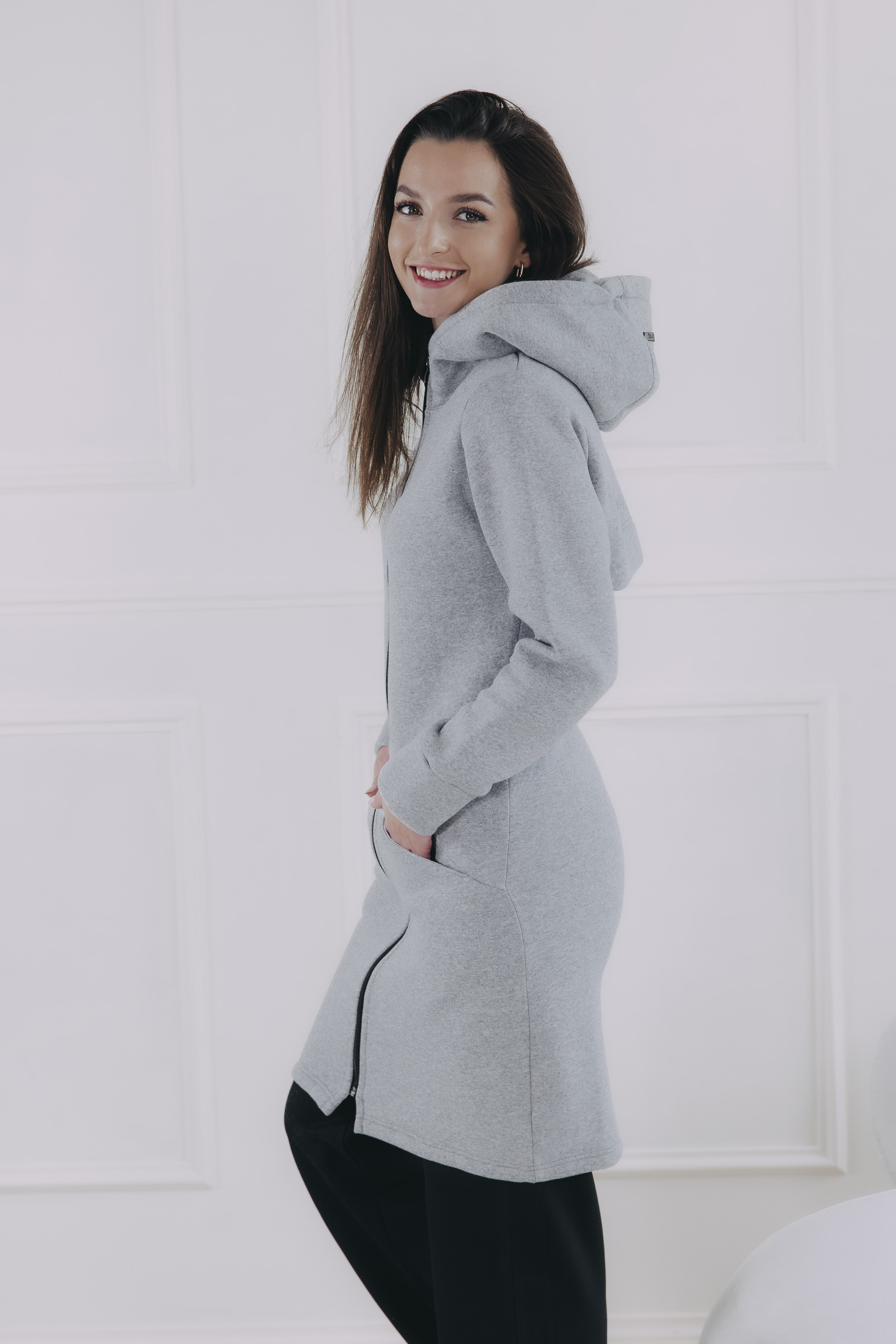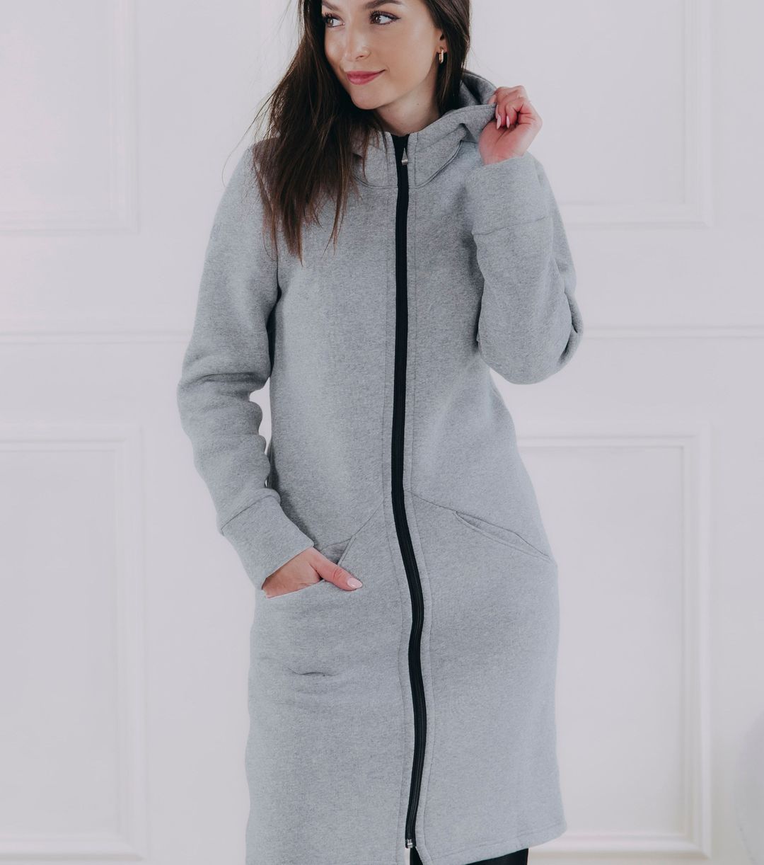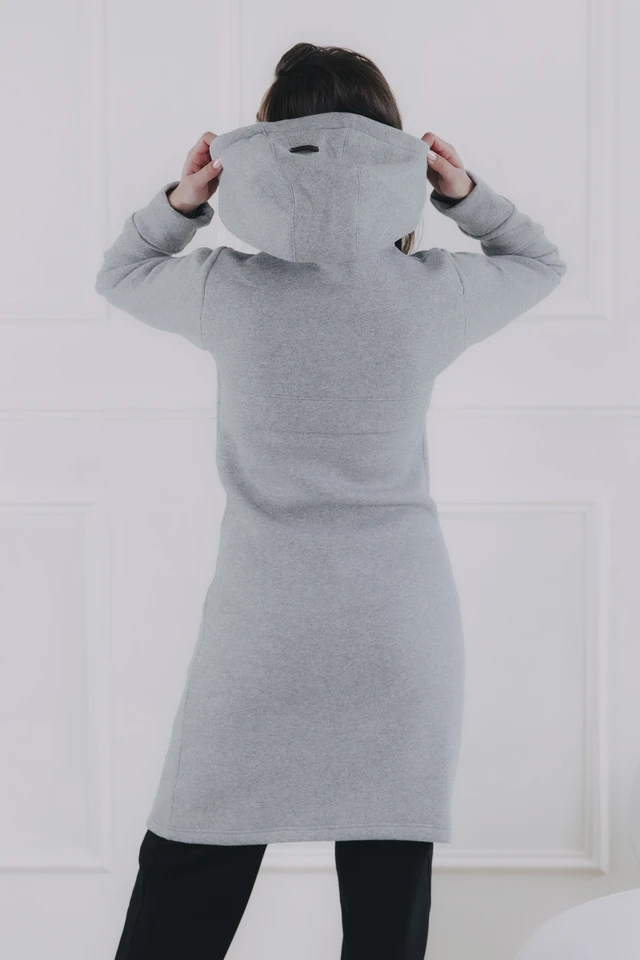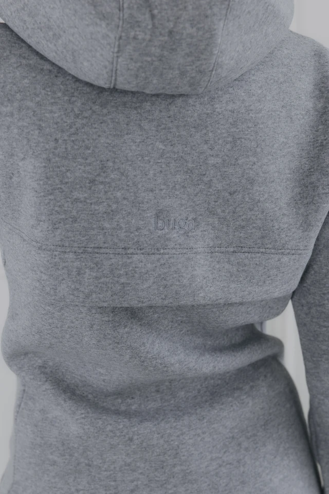Sivý mikinový kabátik Ibo je celoročný kúsok, ktorý využijete ako vrchnú vrstvu, aj ako hrejivý základ pod dlhú bundu či vestu.