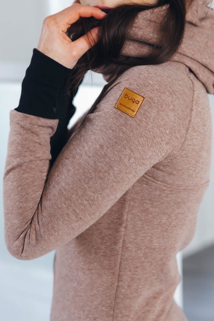 Raglánové rukávy sú zakončené dvojitým nápletom rebrovaním. Strih s dĺžkou po kolená robí z Lerato trochu chameleóna - dá sa nosiť ako kabátik, alebo dlhšia mikča. Pomyselnú bodku tvorí veľká kapucňa, ktorá bude prvá pomoc, keď sa náhle ochladí.