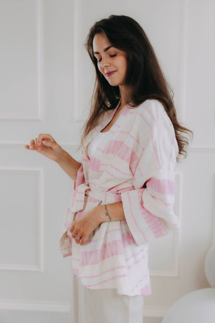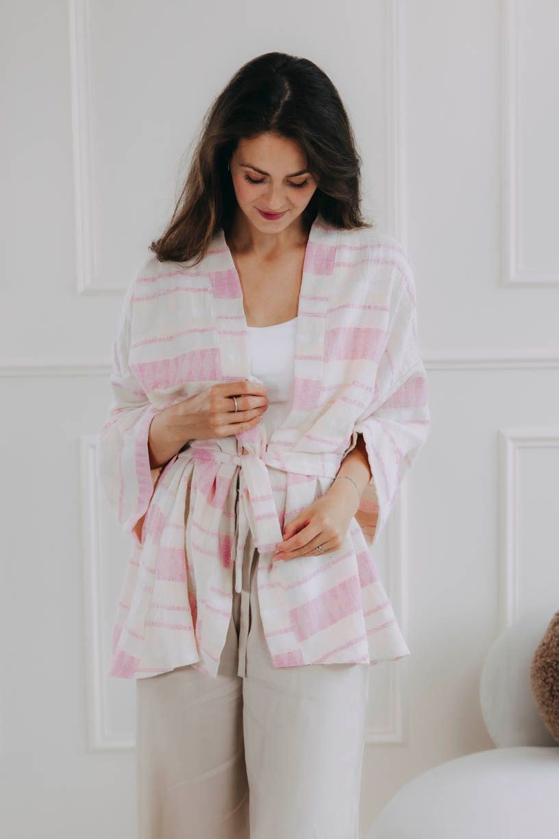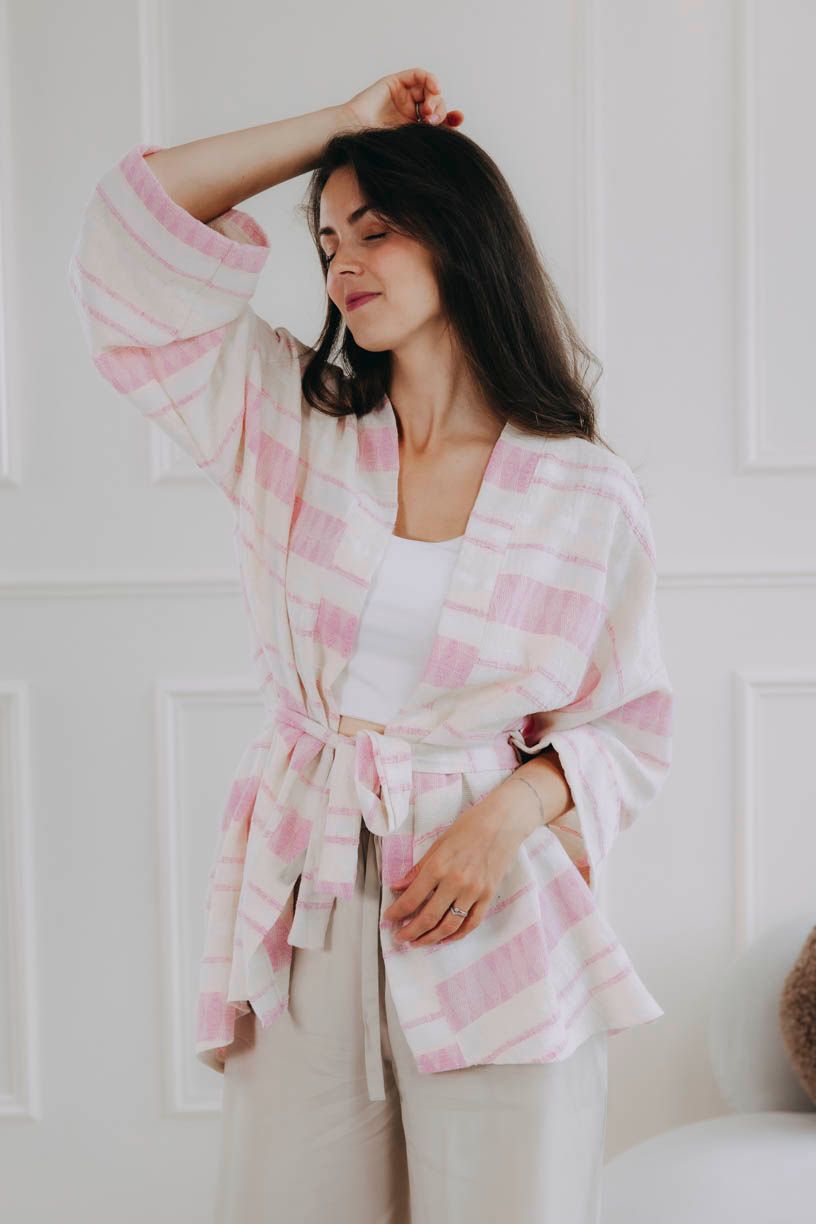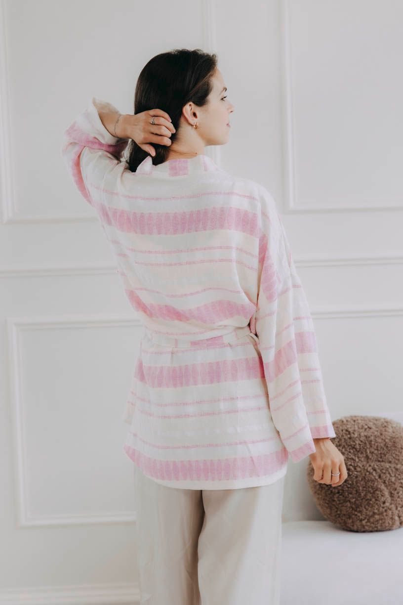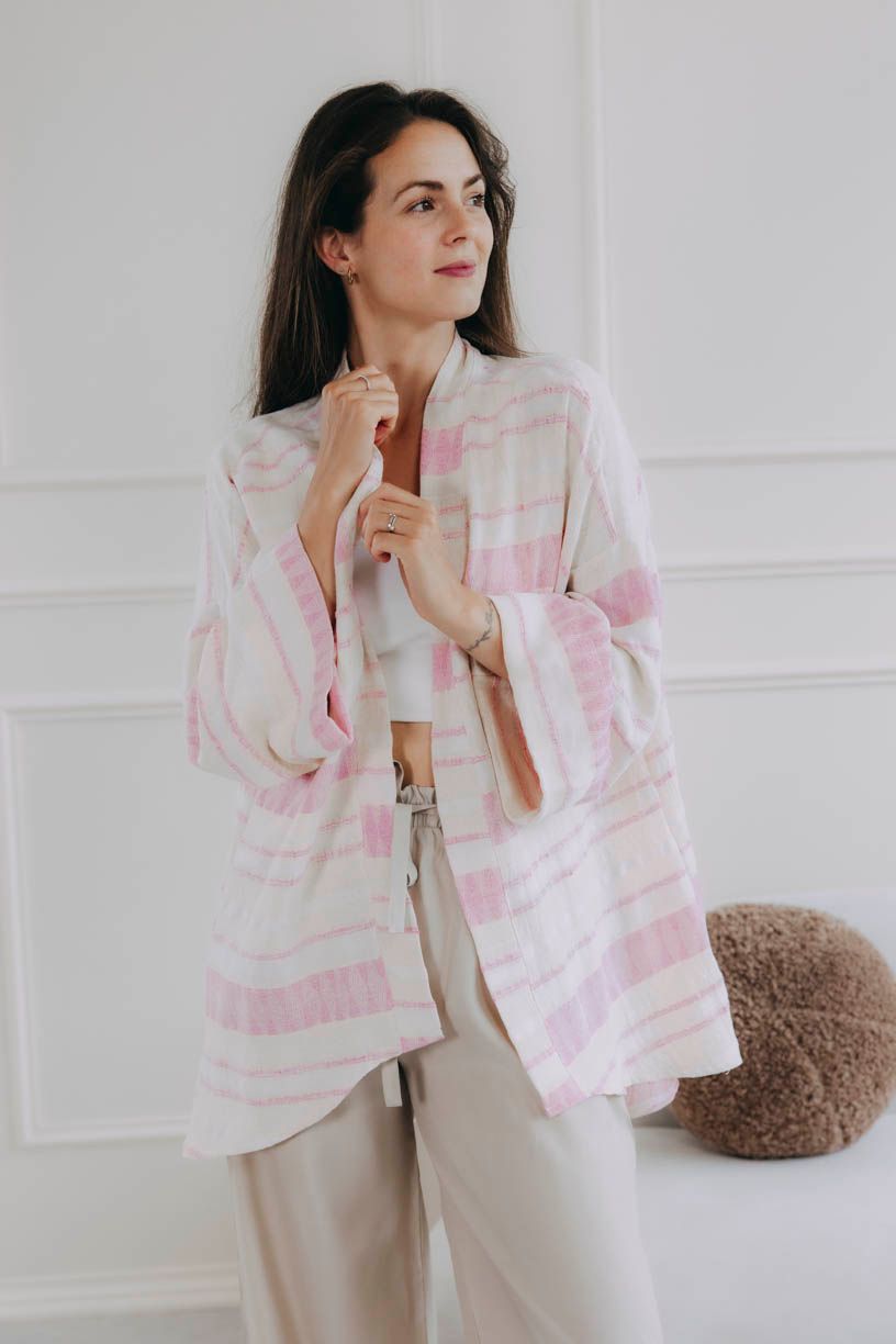 Túžite po kúsku, ktorý vdýchne každému dňu ľahkosť, štýl a nenútenú eleganciu? Zoznámte sa s kardigánom Alinafe. Nežný spoločník s jemnými pásikmi v odtieňoch ružovej, jedinečnou štruktúrou látky a voľným strihom lichotí každej postave.
