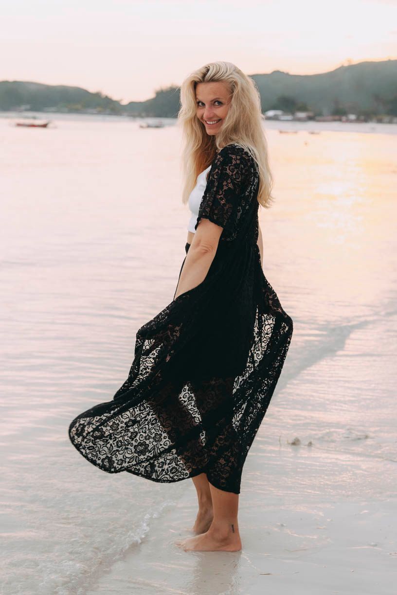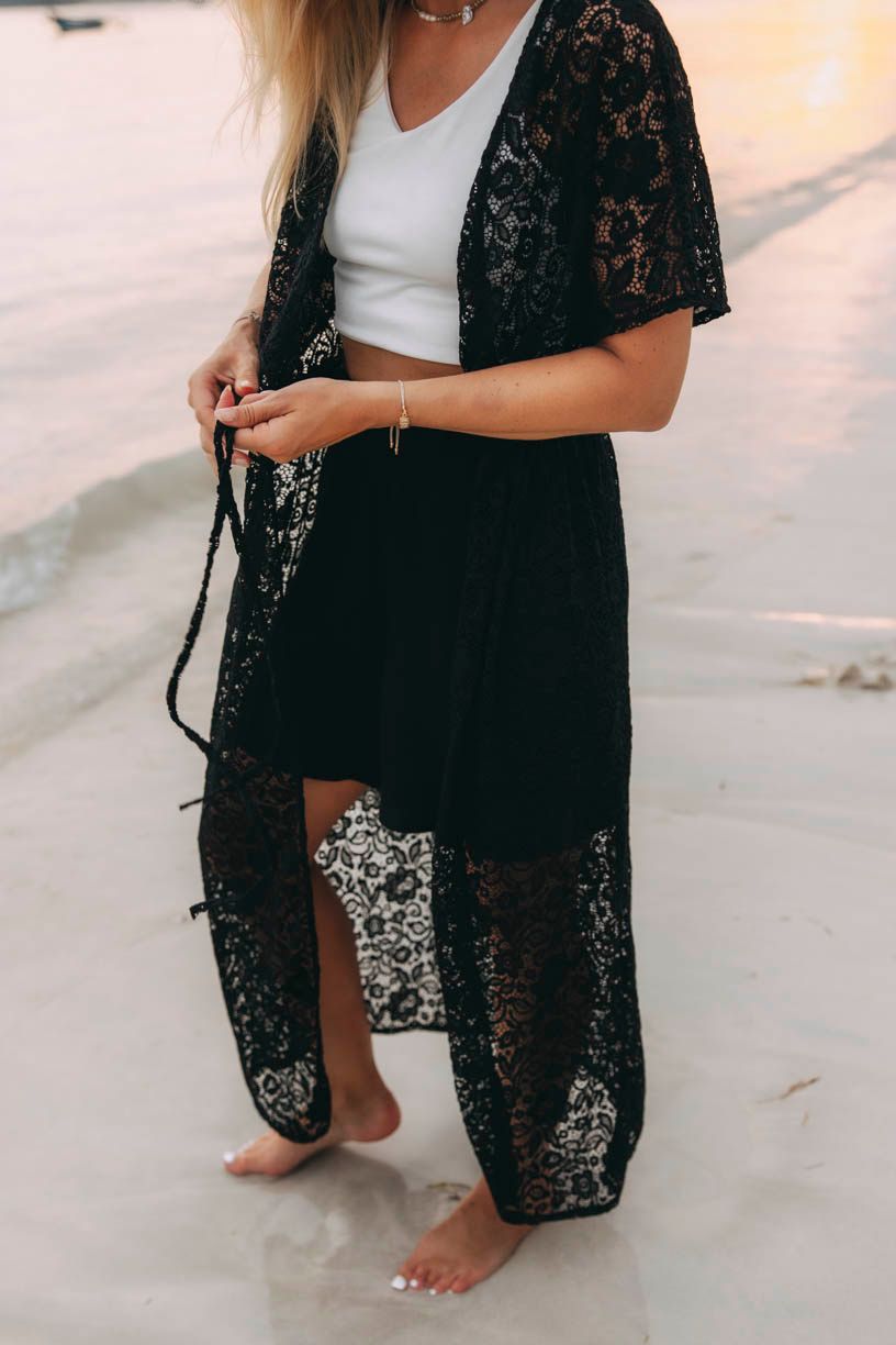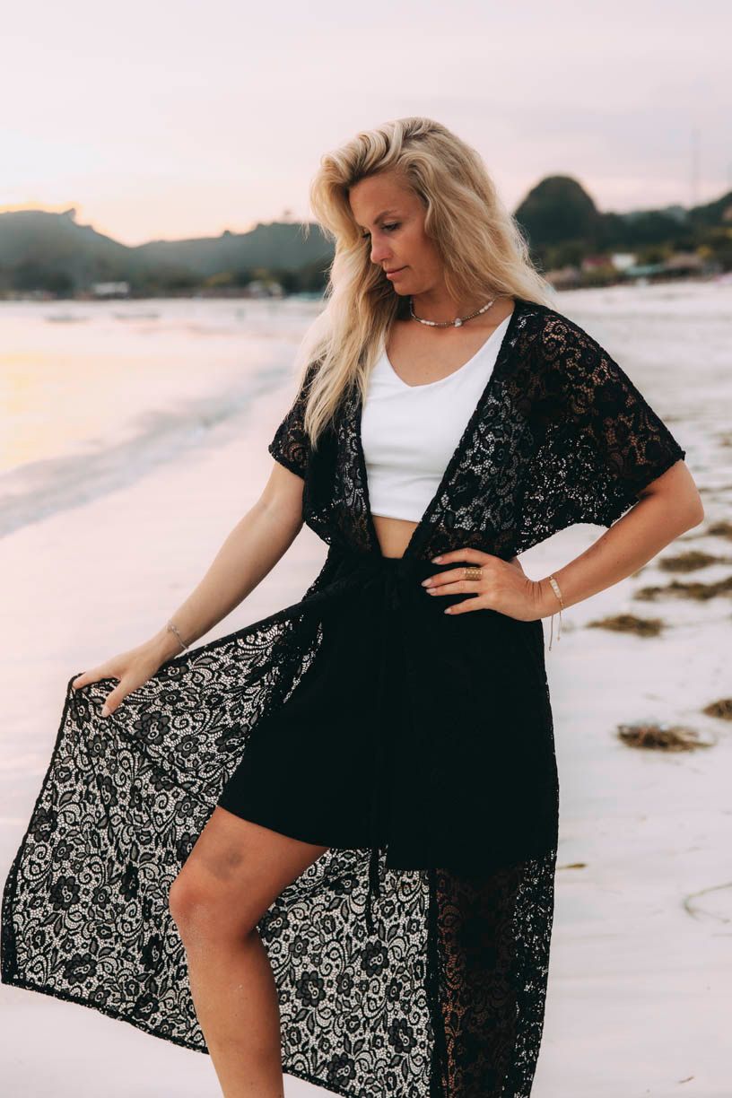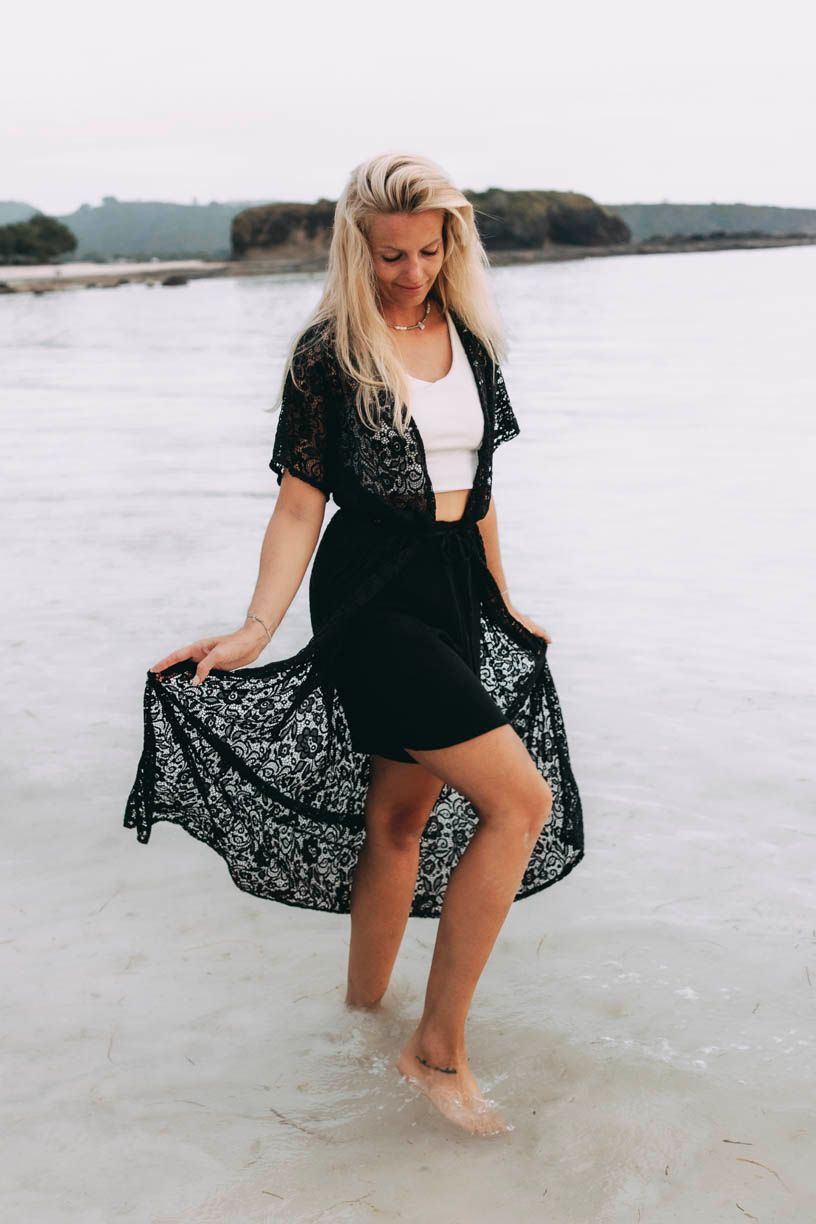 Medeina je azúrový kardigán, ktorý decentne zahalí vaše telo v plavkách, ale rovnako dokonale doplní večerný outfit vhodný na romantickú večeru.