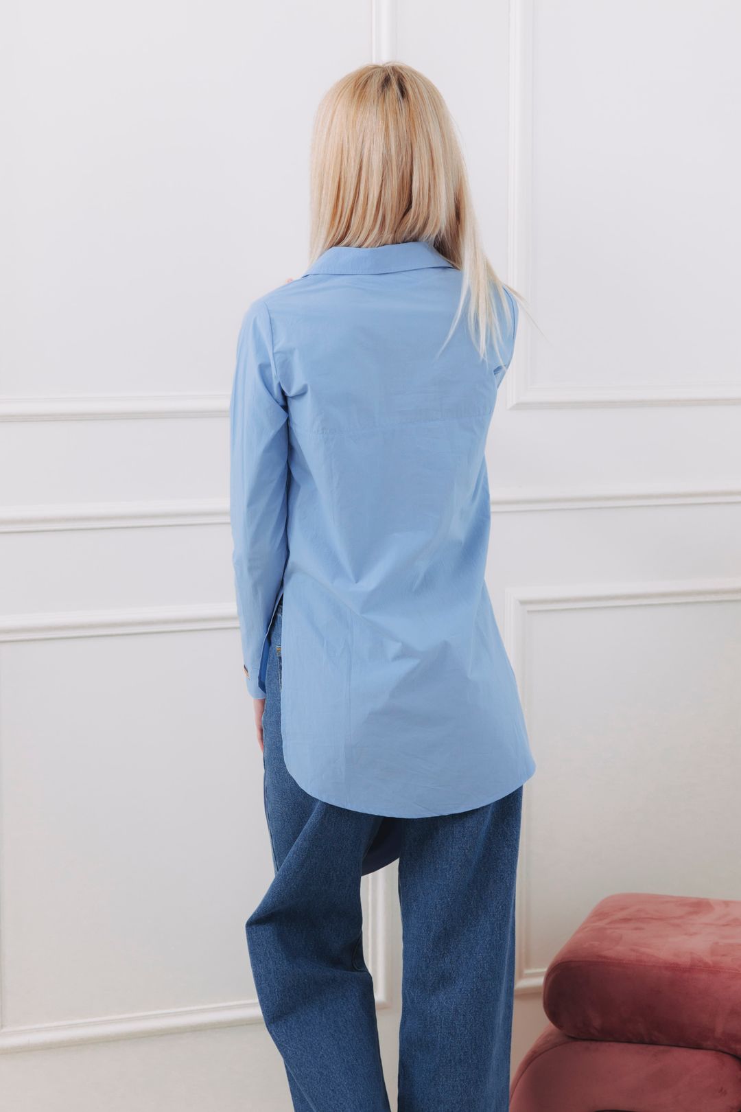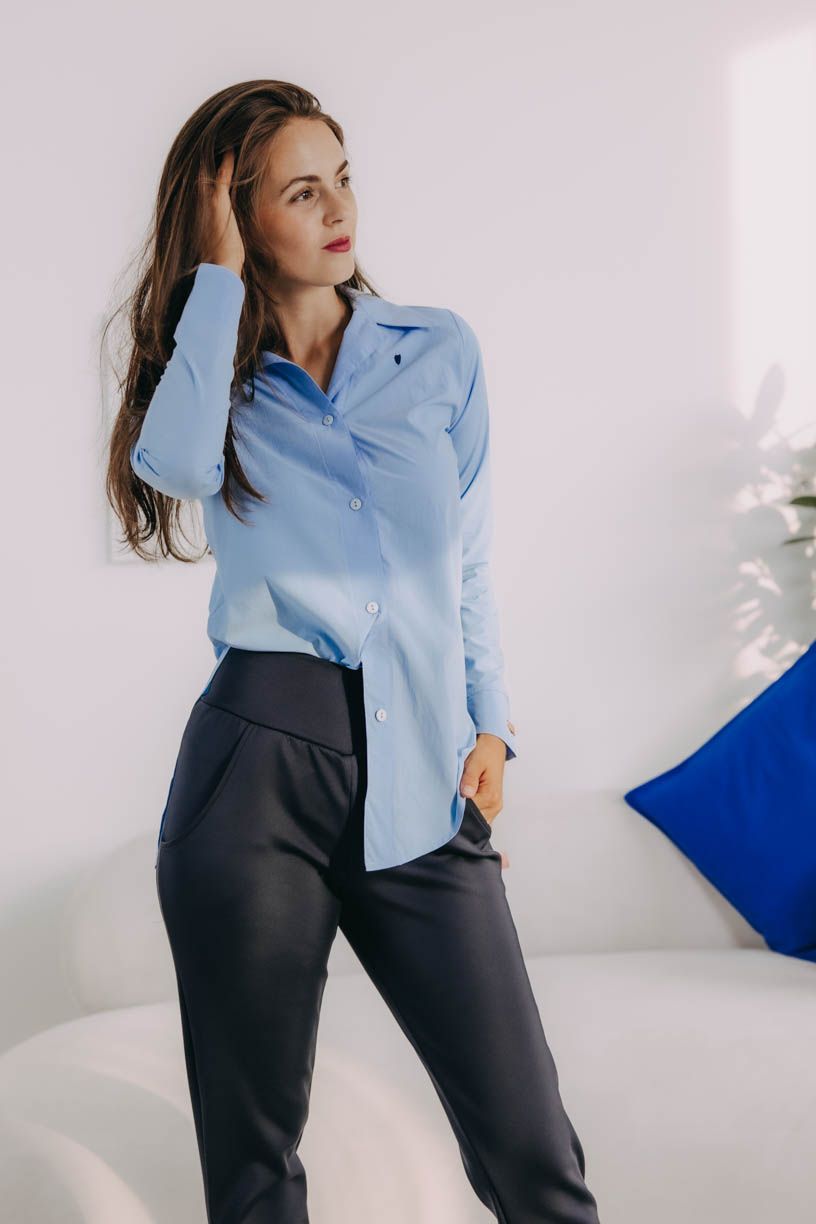 - Strih: Košeľa je rovného strihu, v spodnej časti strihaná do guľata s dlhým rukávom. Pekne kopíruje postavu a pristane všetkým typom postáv.