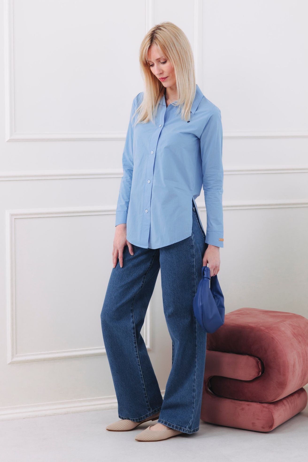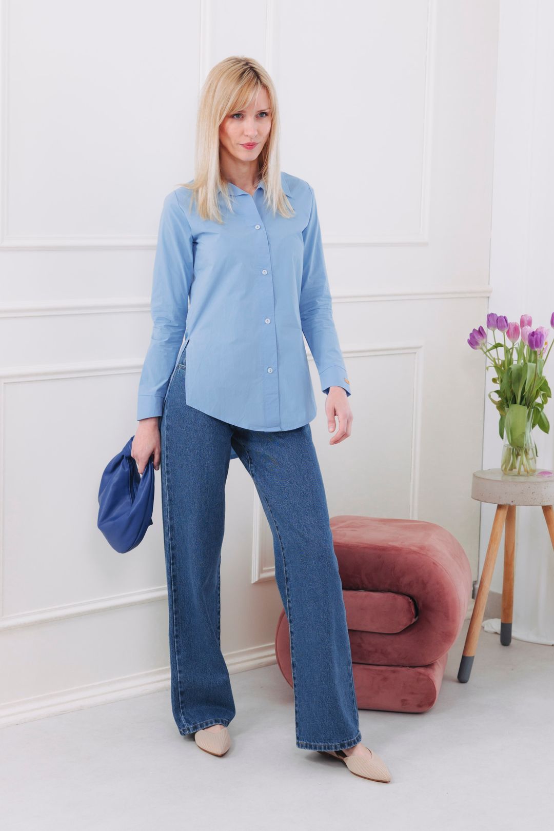 - Dokonalá elegancia: Noste košeľu zastrčenú v elegantných nohaviciach s vysokým pásom a s oversized sakom alebo jednoduchým svetríkom, spod ktorého necháte vykukovať golier. Pre outfit dotiahnutý do posledného detailu pridajte jemný opasok a mokasíny.
