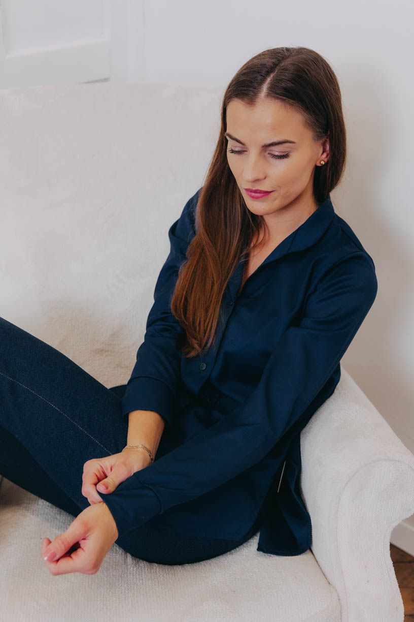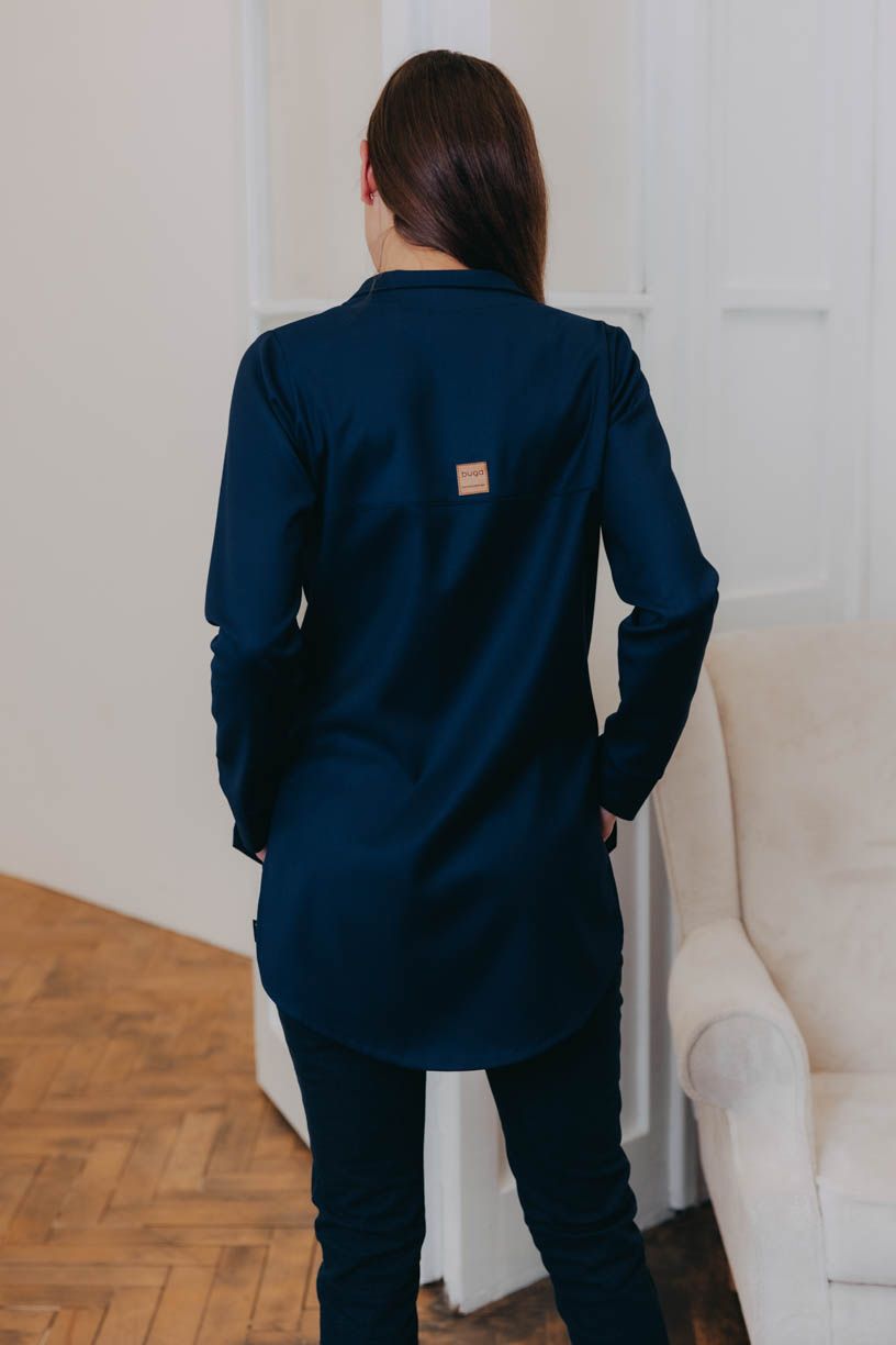 Košeľa je pružná, v spodnej časti strihaná doguľata a jemne priliehavá, aby pekne kopírovala postavu. Bočné rozparky sme navrhli pre lepšie zastrčenie do nohavíc, ale ktovie, ako ich využijete vy, keď necháte voľnú ruku fantázii. Jedno je isté. Či budete v ležérnej košeli a mikine, alebo pôjdete za slušnú dámu v saku, ručíme za radosť z nosenia v každej situácii.