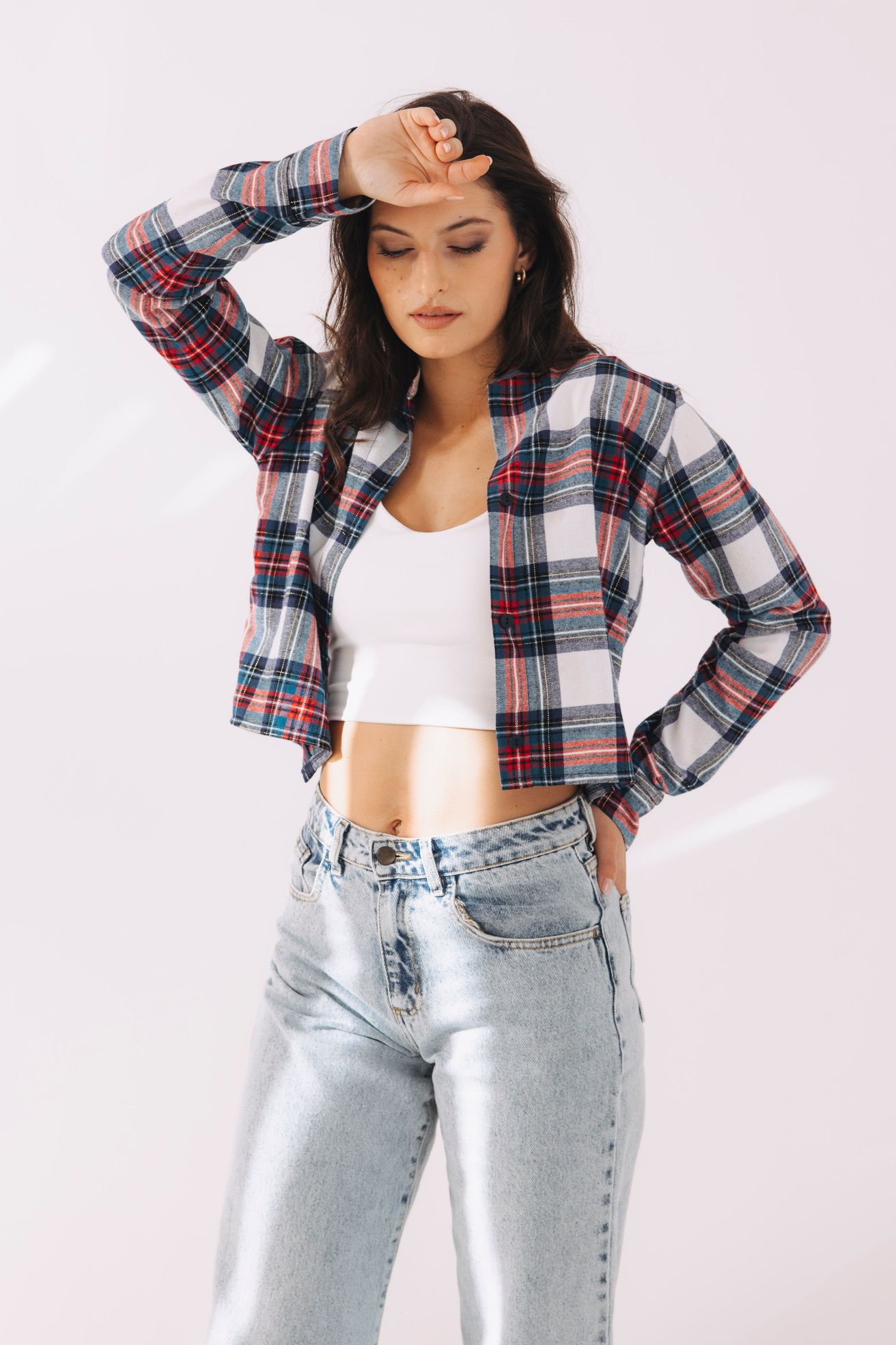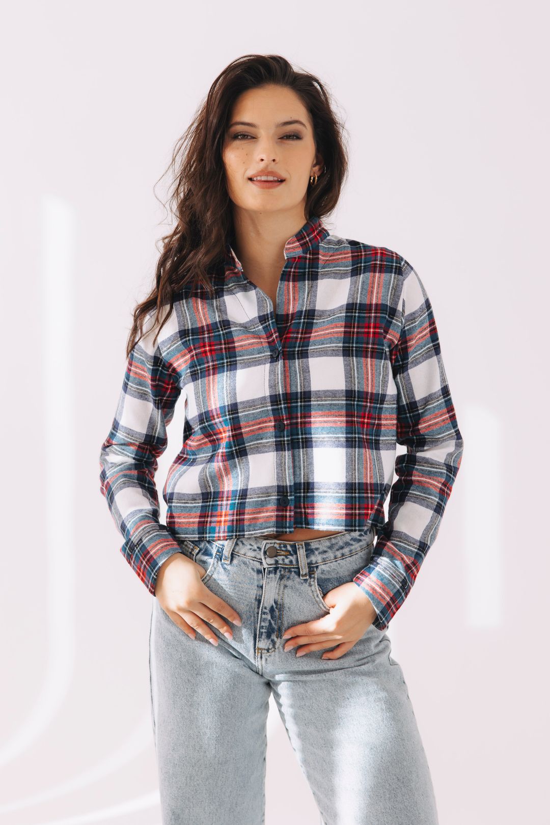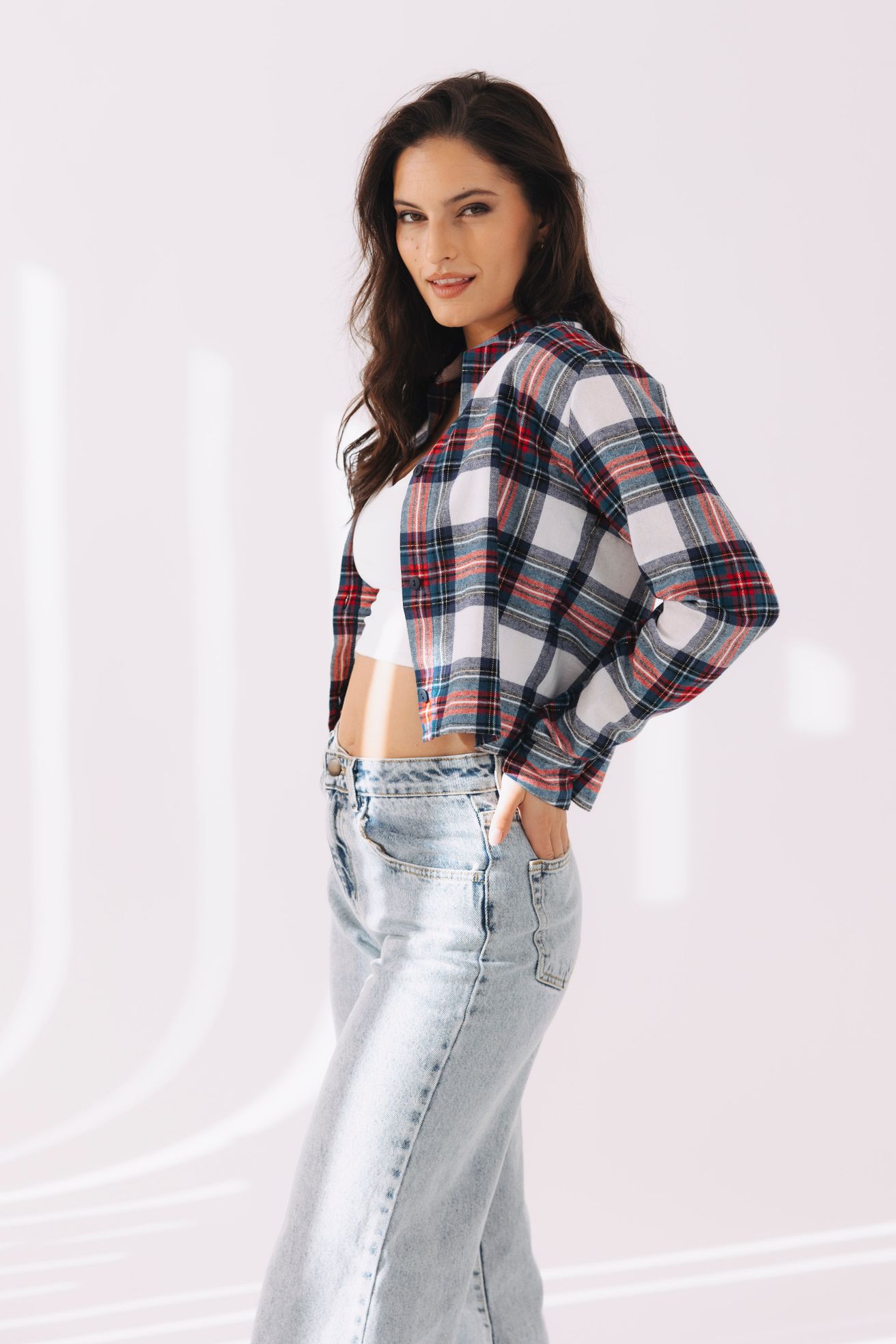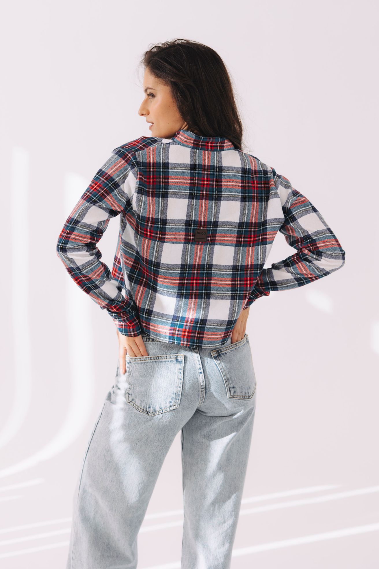 - Farba a vzor: Biela s jemným károm – nadčasová klasika, ktorá sa hodí ku všetkému.