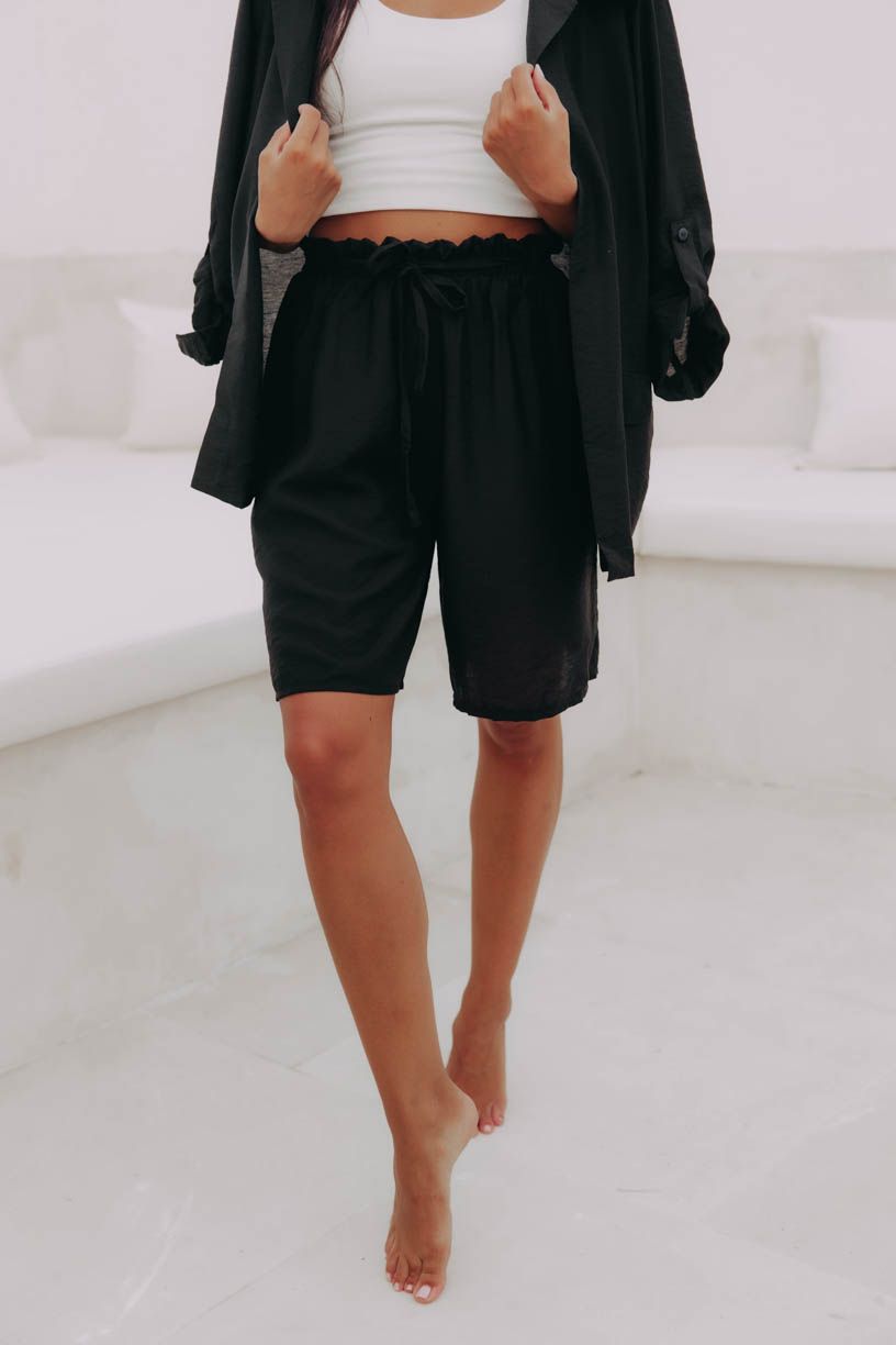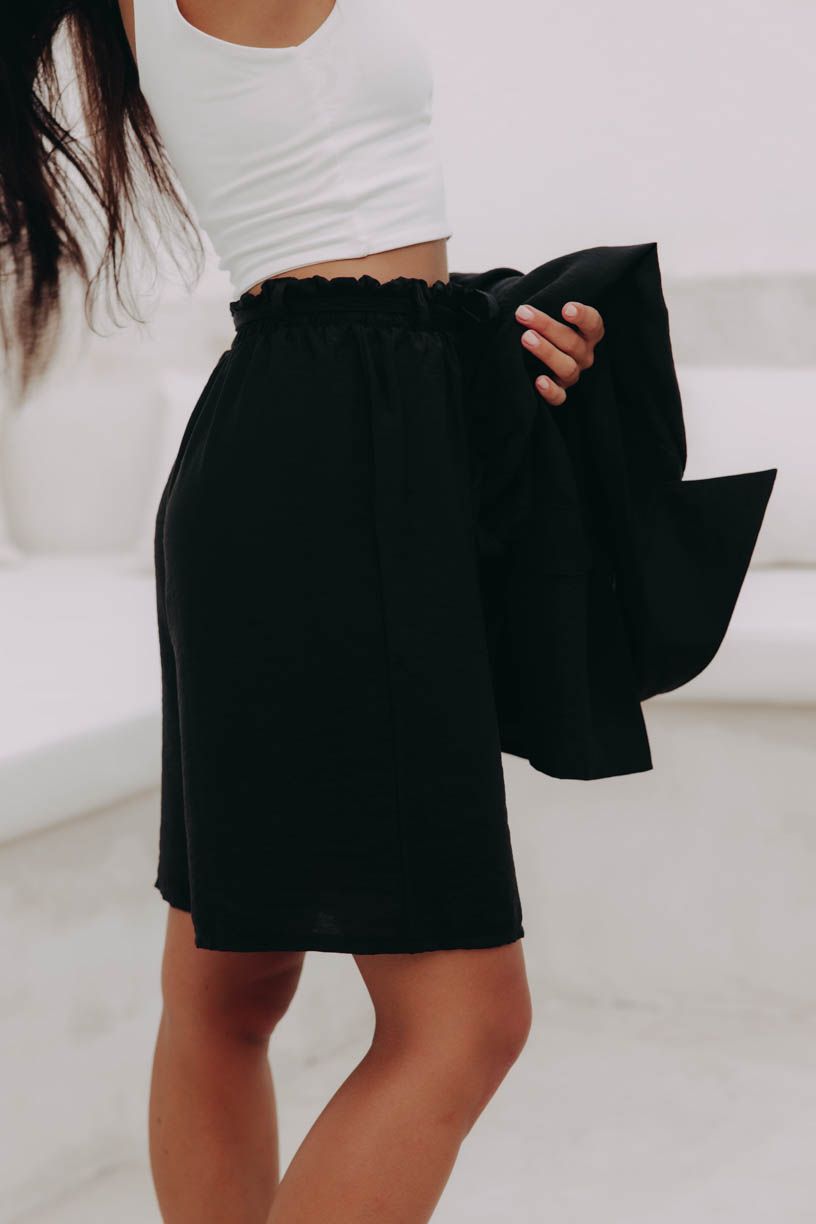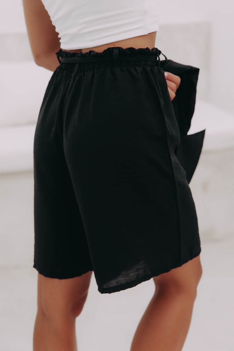 Pohodlné kraťasy s elegantným riasením v páse a pútkami na opasok sú svojím širokým strihom ako stvorené do tropických dní.