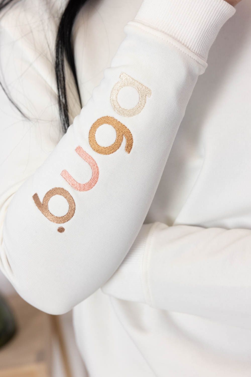 Mikina Asata z prémiovej bavlny s troškou polyesteru reprezentuje tím Buga nielen veľkou výšivkou, ale svojím kvalitným materiálom a univerzálnosťou.