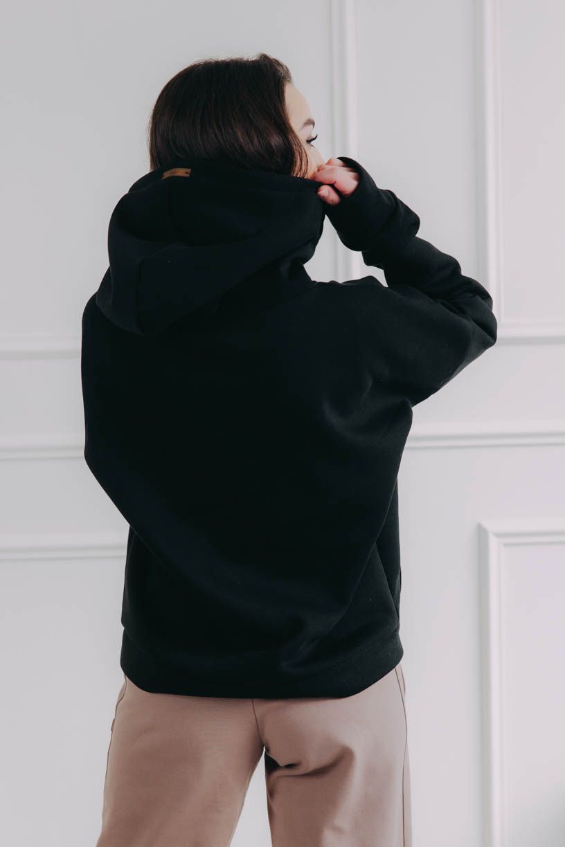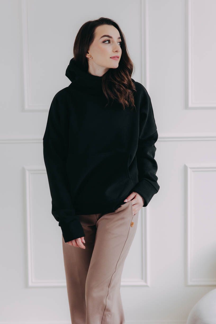 Veľká kapucňa skvele vynikne, keď ju necháte nenútene vykukovať spod kabátu, bombery alebo bundy. Ak pridáte čiapku či šiltovku, získate štýlový streetwearový vzhľad. Mikina tak poslúži ako pohodlná a hrejivá vrstva uprostred outfitu.