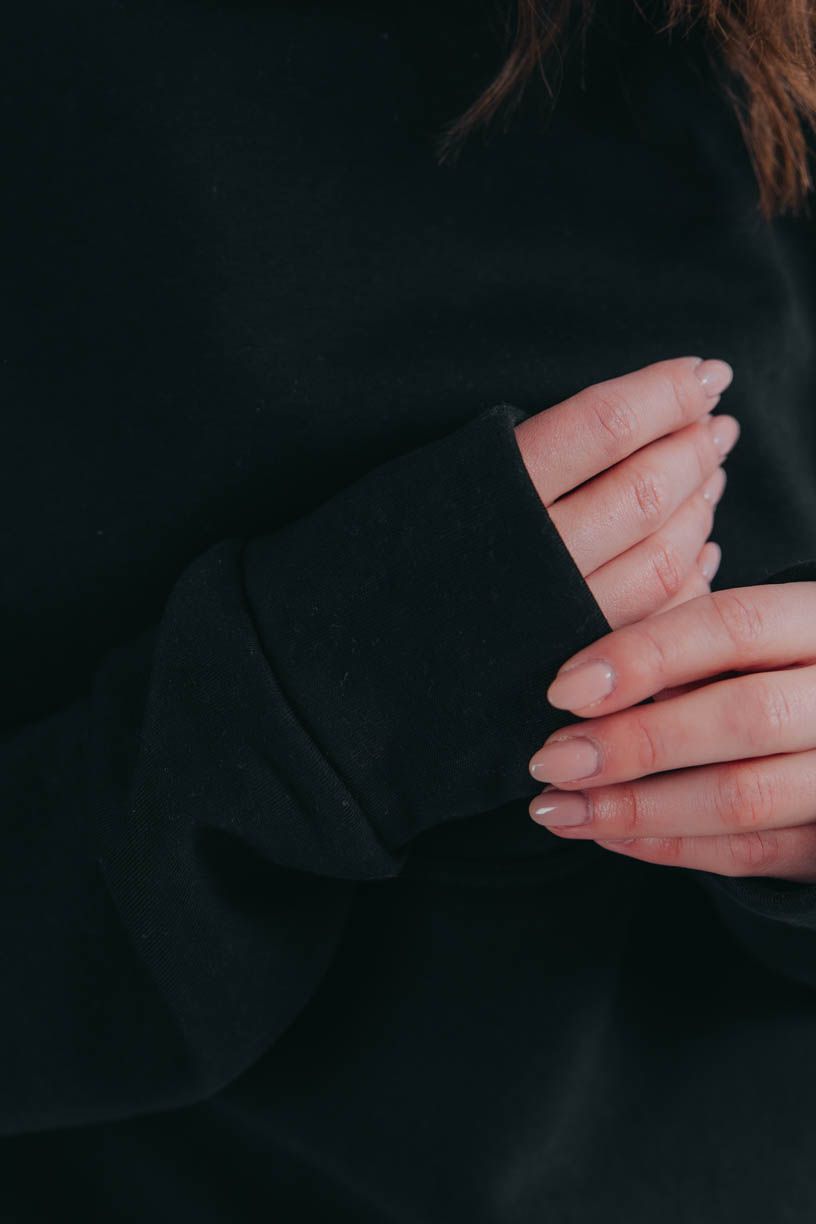 Vytvorte kontrast, ktorý neprehliadnete – pohodlie so štipkou elegancie! Mikinu Hawa skombinujte s midi sukňou, napríklad modelom Mawe. Pre odvážny streetový vibe siahnite po šiltovke a robustných členkových topánkach. A ak chcete outfit povýšiť na elegantnejšiu úroveň, stačí vymeniť obuv za členkové topánky na podpätku a pridať jednoduchú kabelku.