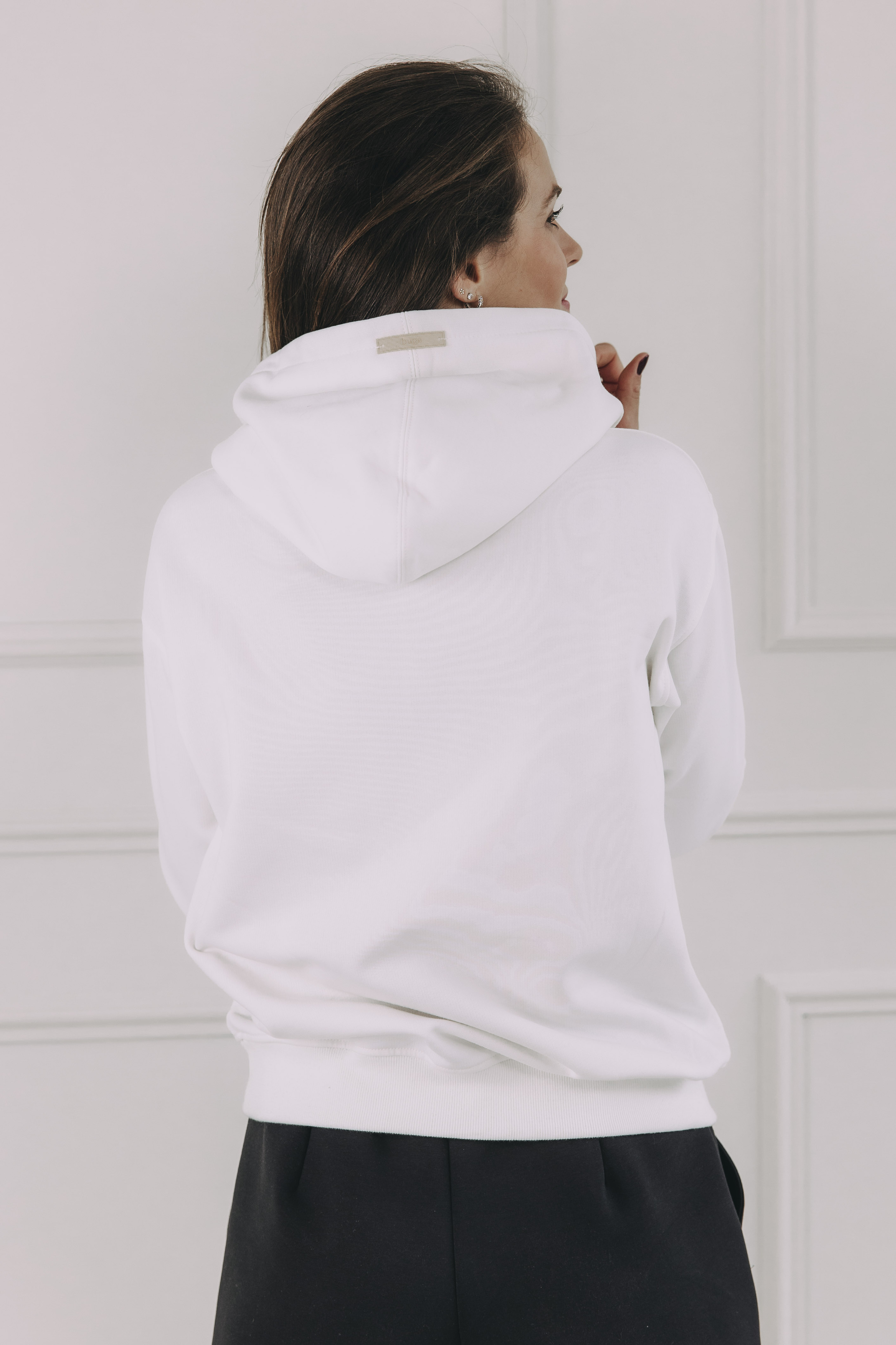 Prímes polyesteru v prémiovej bavlne neznamená zníženie kvality – práve naopak. Zabezpečí, že si mikina Iff zachová svoj krásny tvar a pružnosť aj po mnohých praniach. Už žiadne vytiahnuté lemy. Je to dôležitý prvok pre dlhú životnosť a udržateľnú módu.