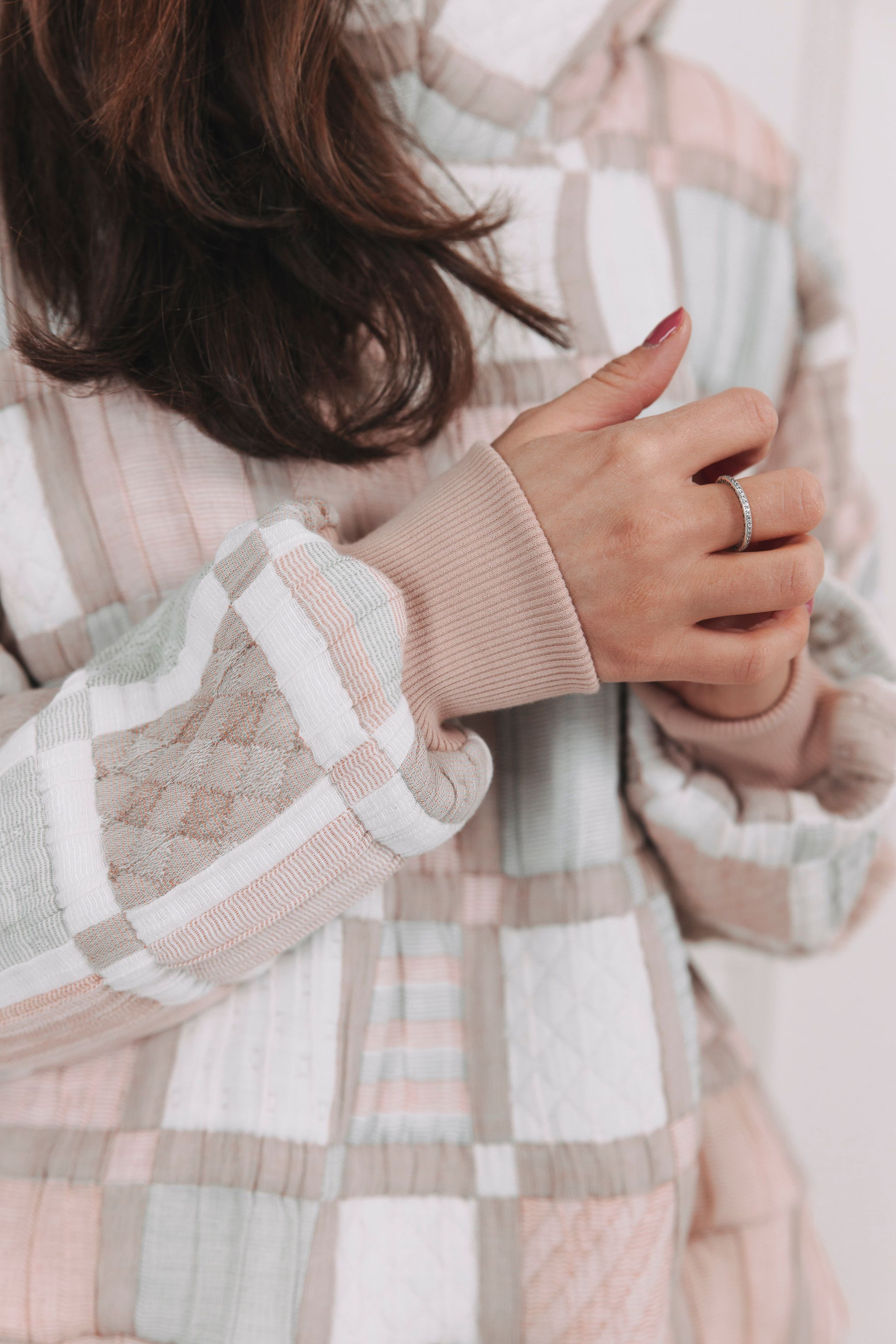 Farba a vzor: Prešívané kocky v krémovej, zelenkavej a pudrovej dodajú prirodzený šmrnc a zároveň ľahkosť a sviežosť.
