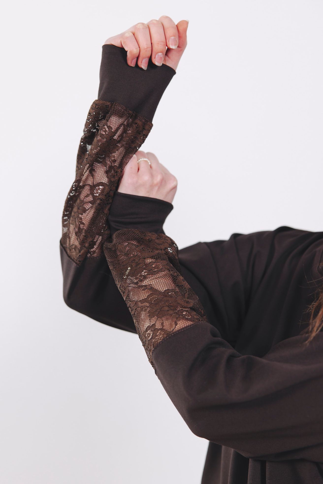 Nájsť kúsok, ktorý v sebe spája absolútne pohodlie a rafinovanú ženskosť, je niekedy oriešok, no mikina Nyah v čokoládovo hnedom odtieni splní toto želanie okamžite. Táto elegantná mikina búra mýty o športovom oblečení. Spojili sme mäkkosť obľúbeného materiálu s luxusnou čipkou na rukávoch a vznikla láska na prvý pohľad. Je to presne ten kúsok, ktorý s prehľadom zvládne pracovné stretnutie, romantické rande aj víkendový oddych v prírode.