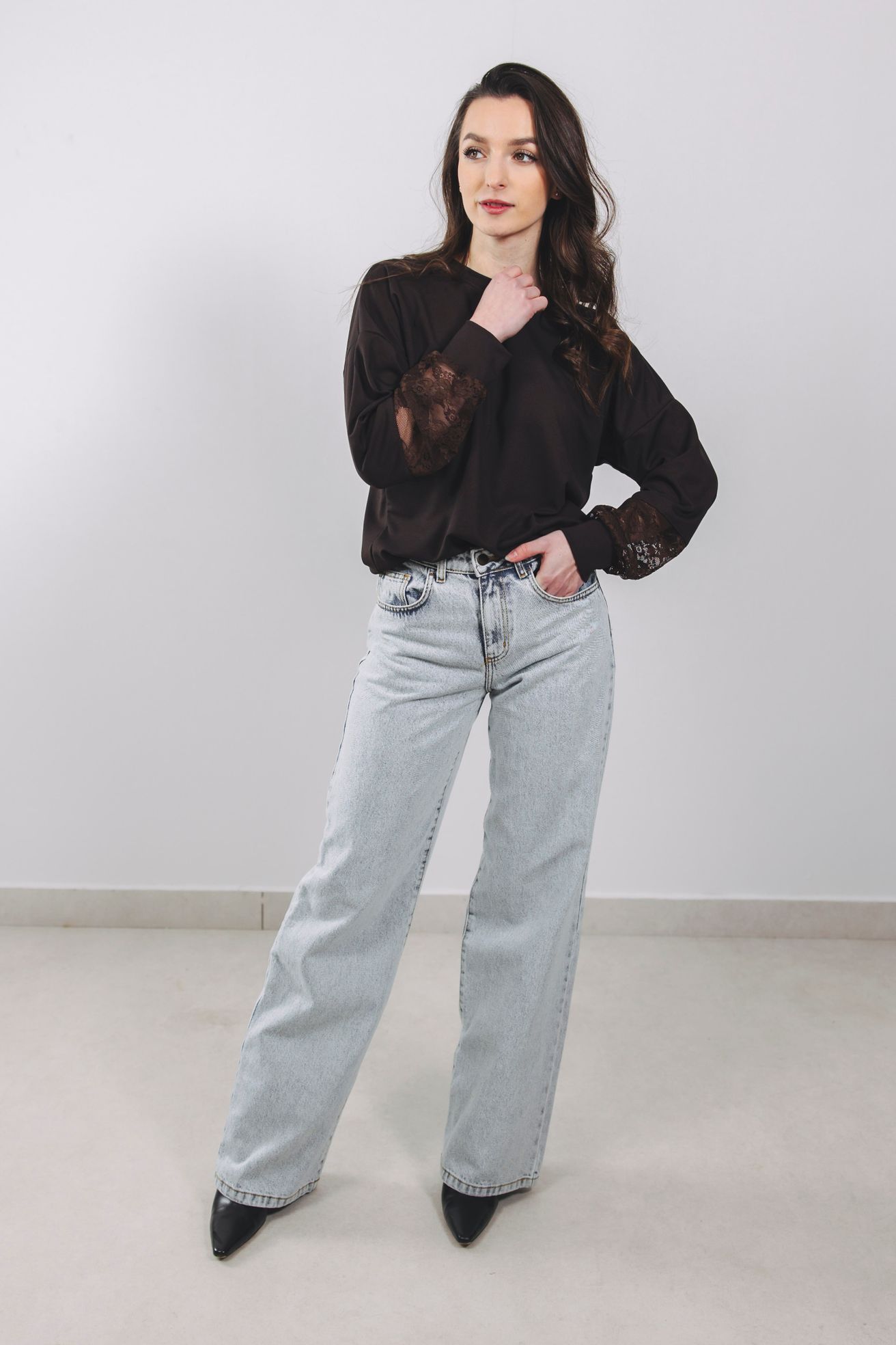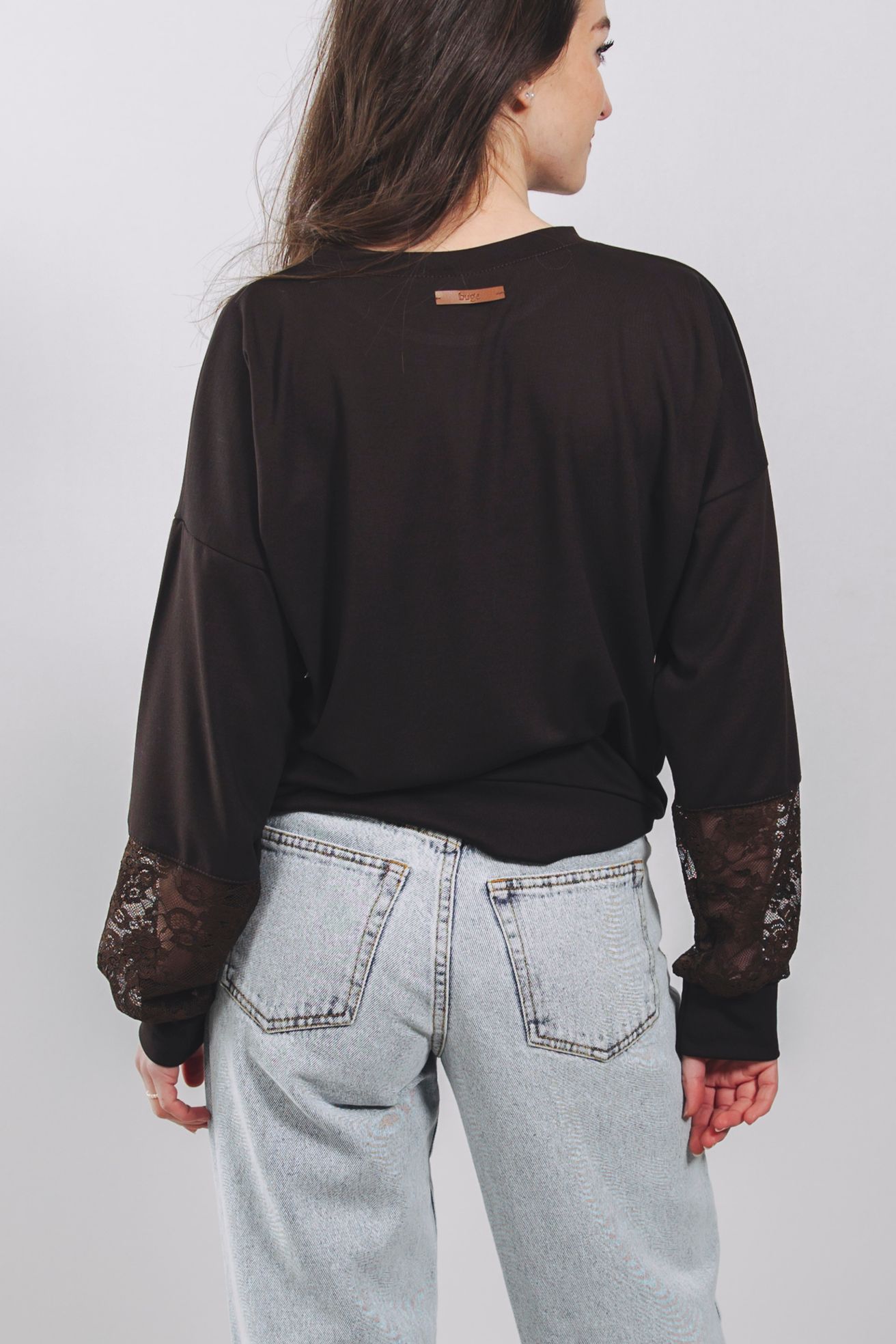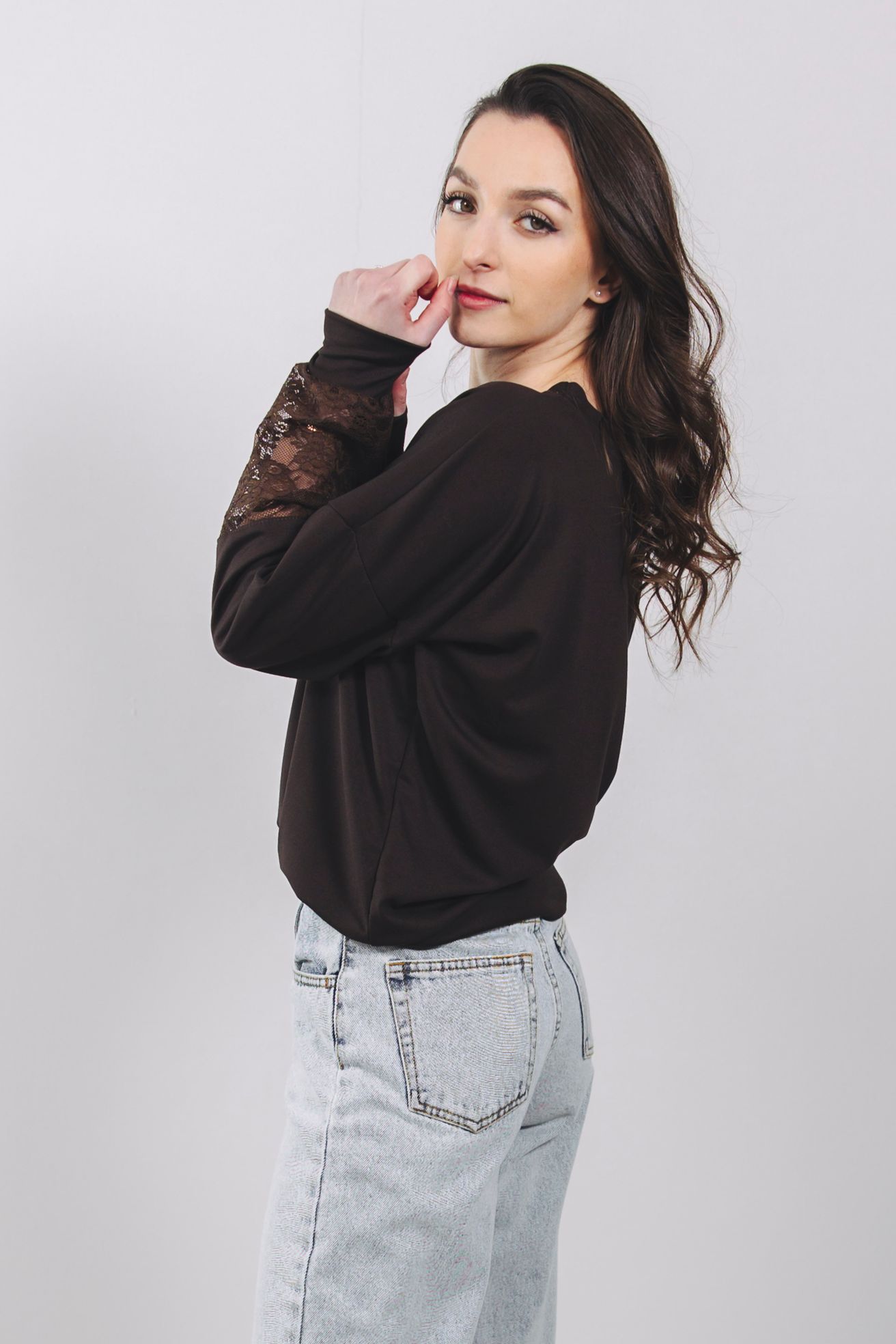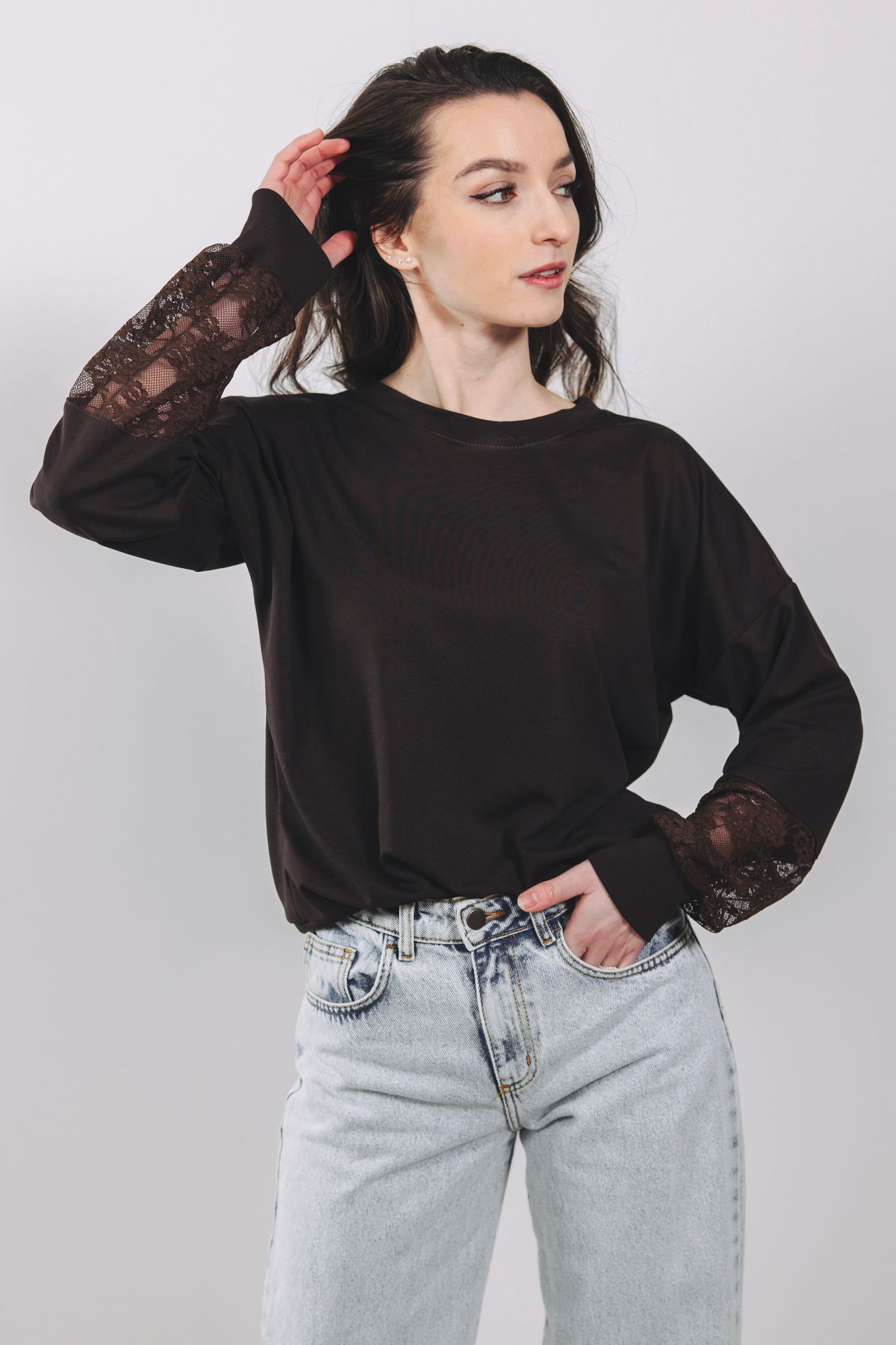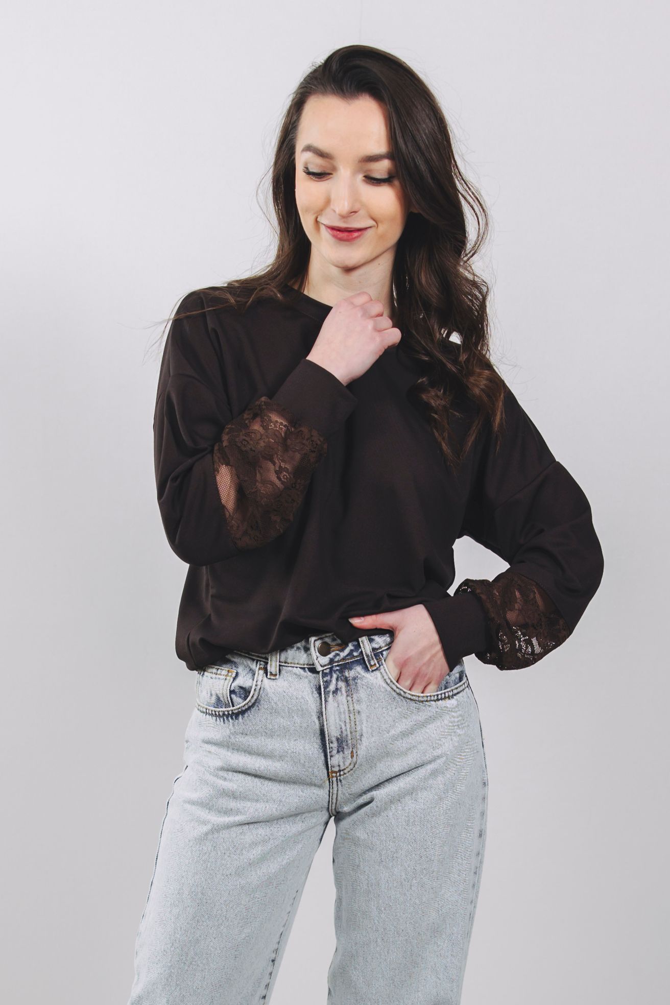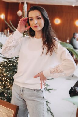 Mikina Nyah spája pohodlie s elegantnou čipkou na rukávoch. Štýlová, univerzálna a ideálna k džínsom aj k sukni.