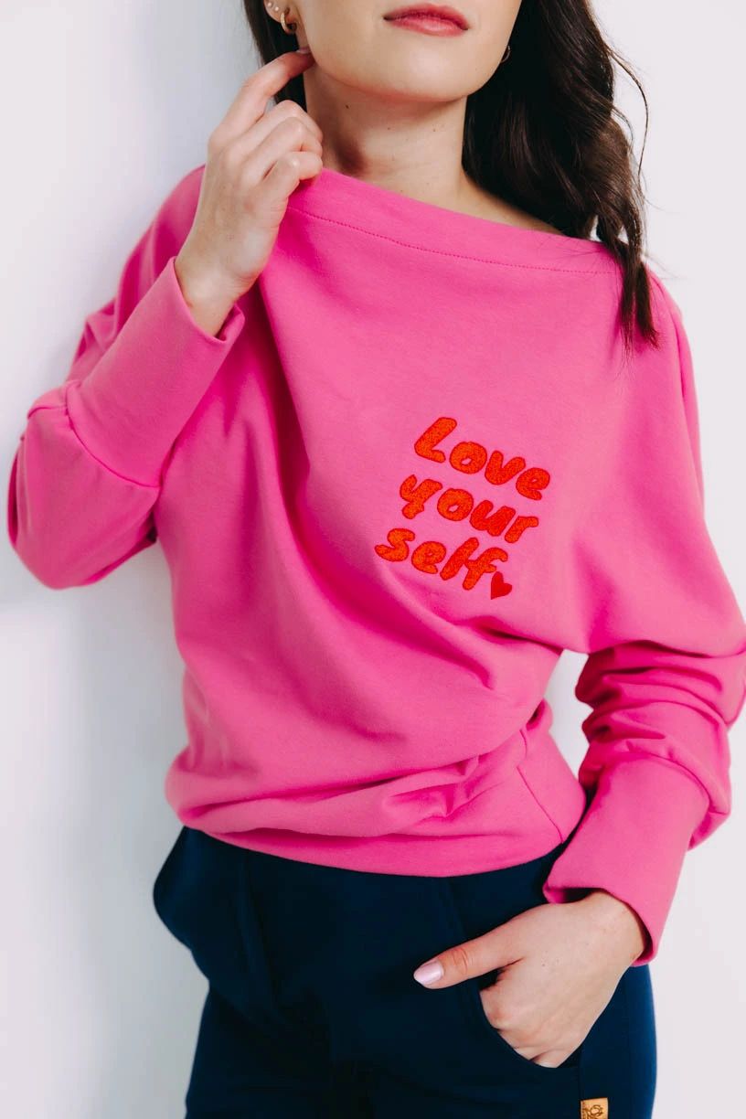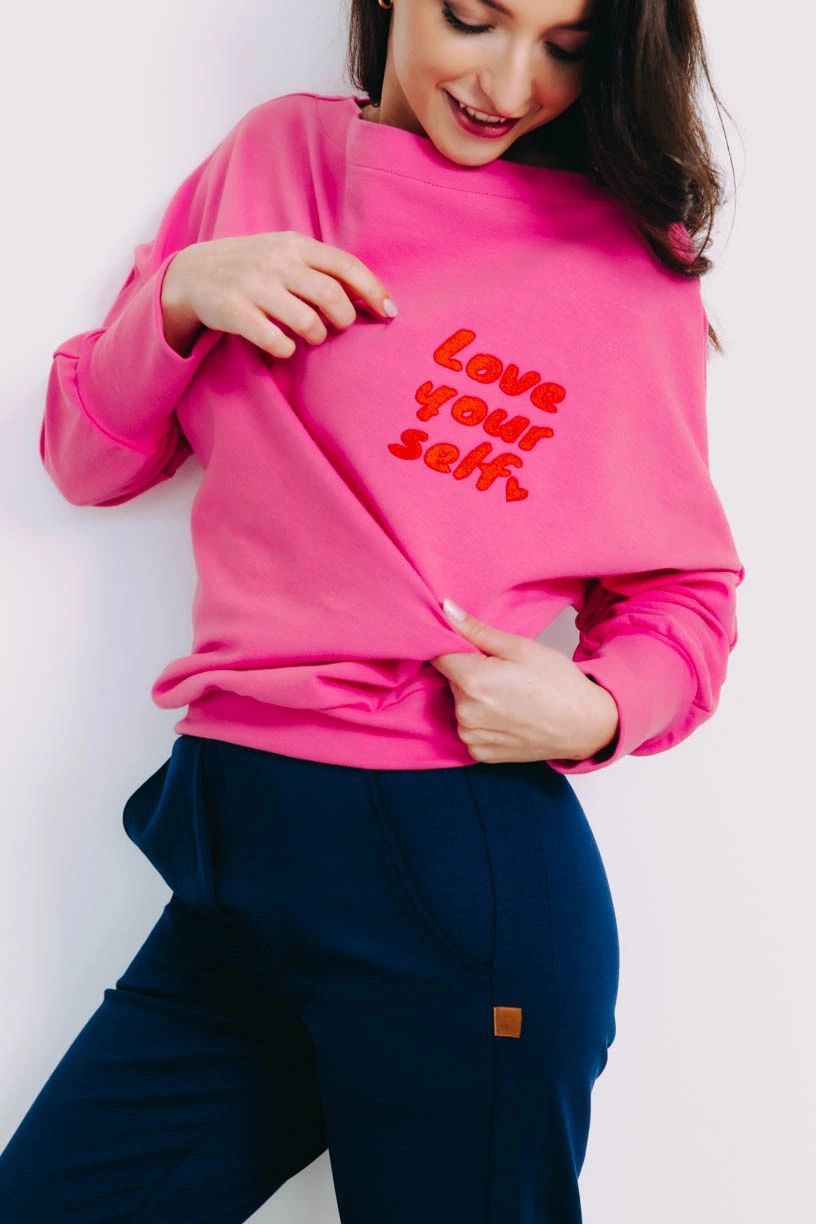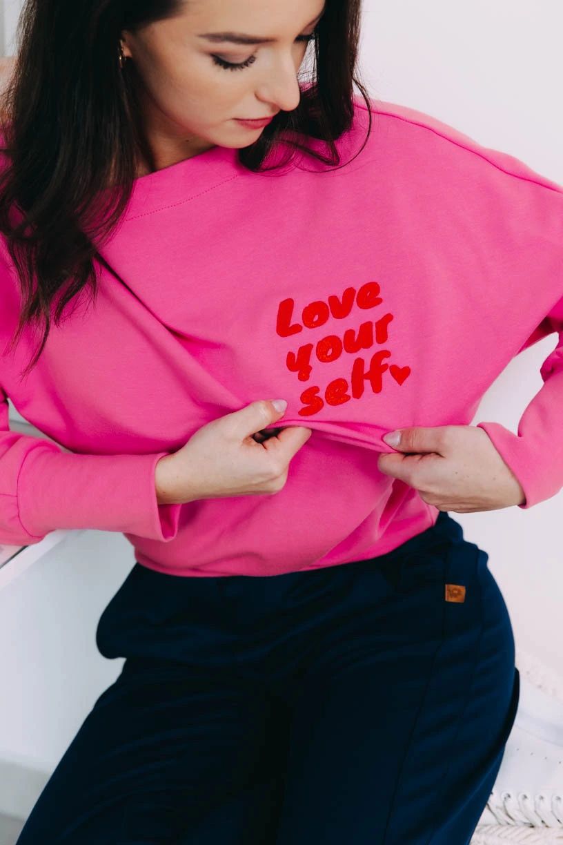 Mikina Tenen je jedinečná svojou výrečnosťou. Mať sa rada je dôležité a táto ružová kráska to hovorí dosť jasne. Nechajte za vás hovoriť originálnu výšivku.
