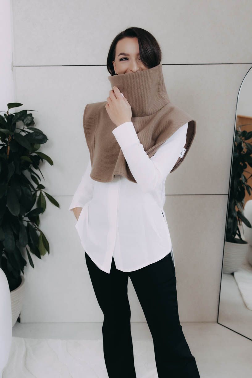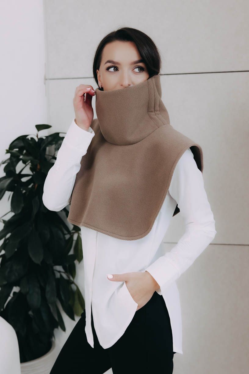 Nákrčník so sťahovacím golierom z príjemného materiálu je nielen praktický, ale aj efektný kúsok. Oceníte ho v chladných dňoch, keď sa nechcete vzdať štýlu.