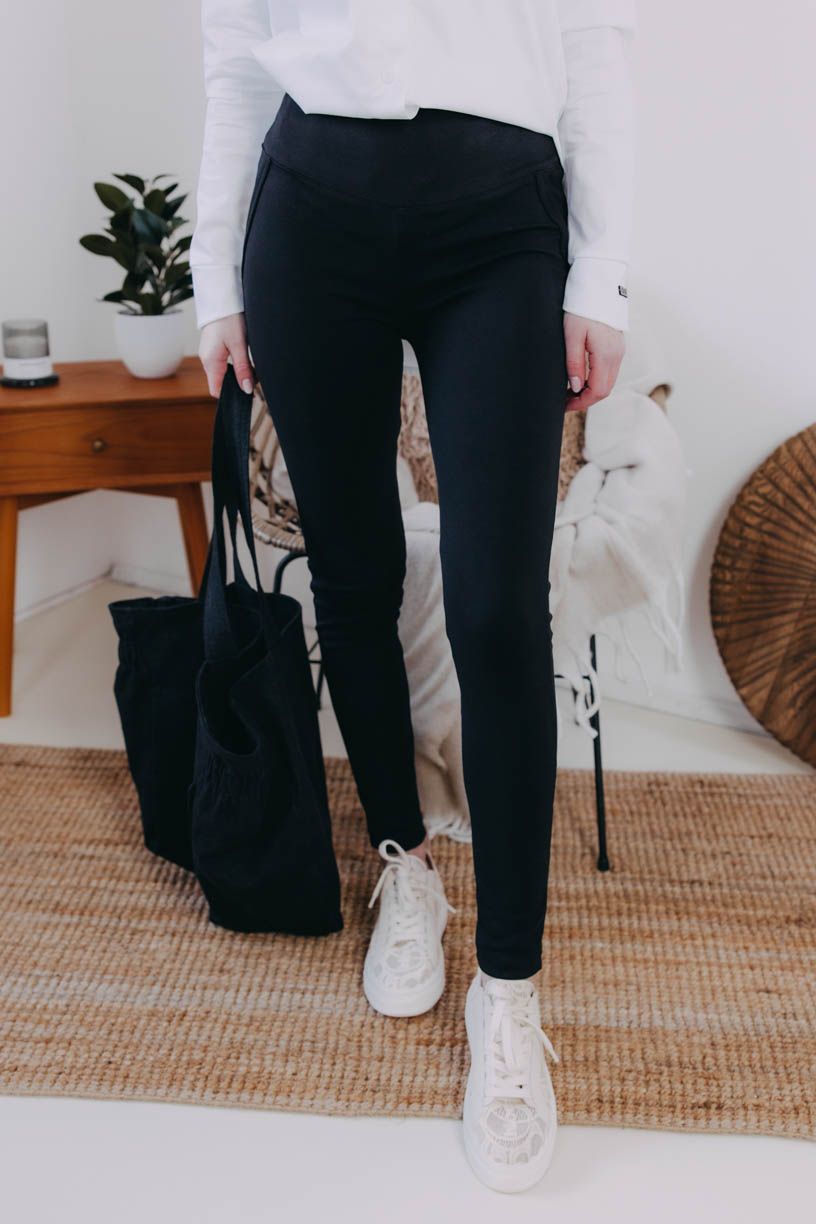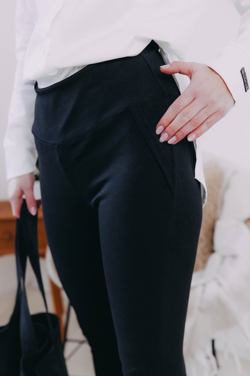 Šikovné univerzálky na obzore. Kvalitné nepriehľadné nelegíny Shema Black s jednoduchým strihom a fake vreckami stačí doplniť šmrncovným zvrškom a ste pripravená vyraziť.