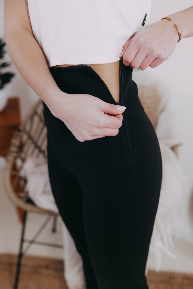 Sebavedome tvrdíme, že lepšie legíny ste ešte nemali. Váš spokojný úsmev sme si poistili nielen super strihom a kvalitným materiálom, ale aj praktickým zipsom na boku.