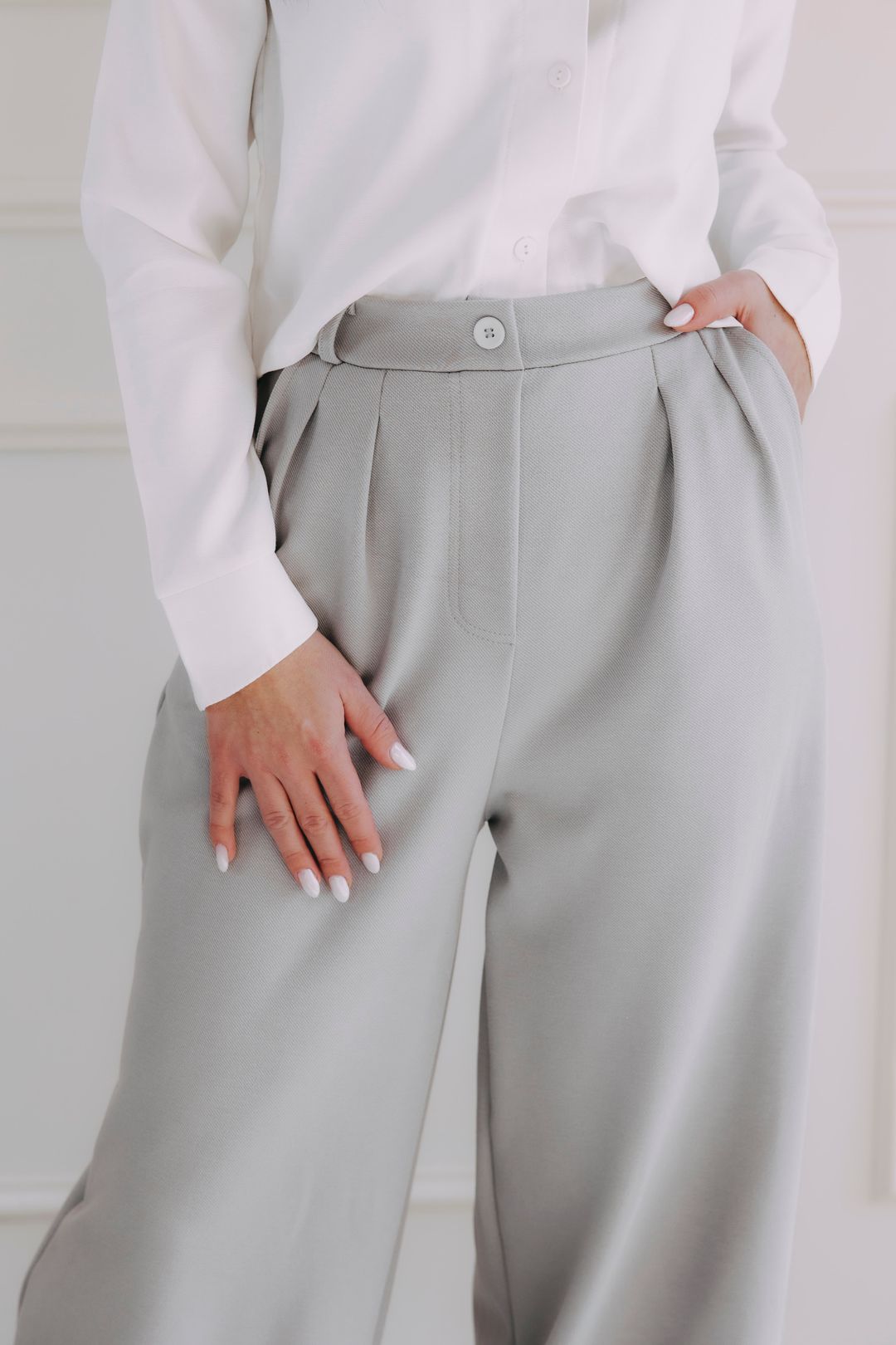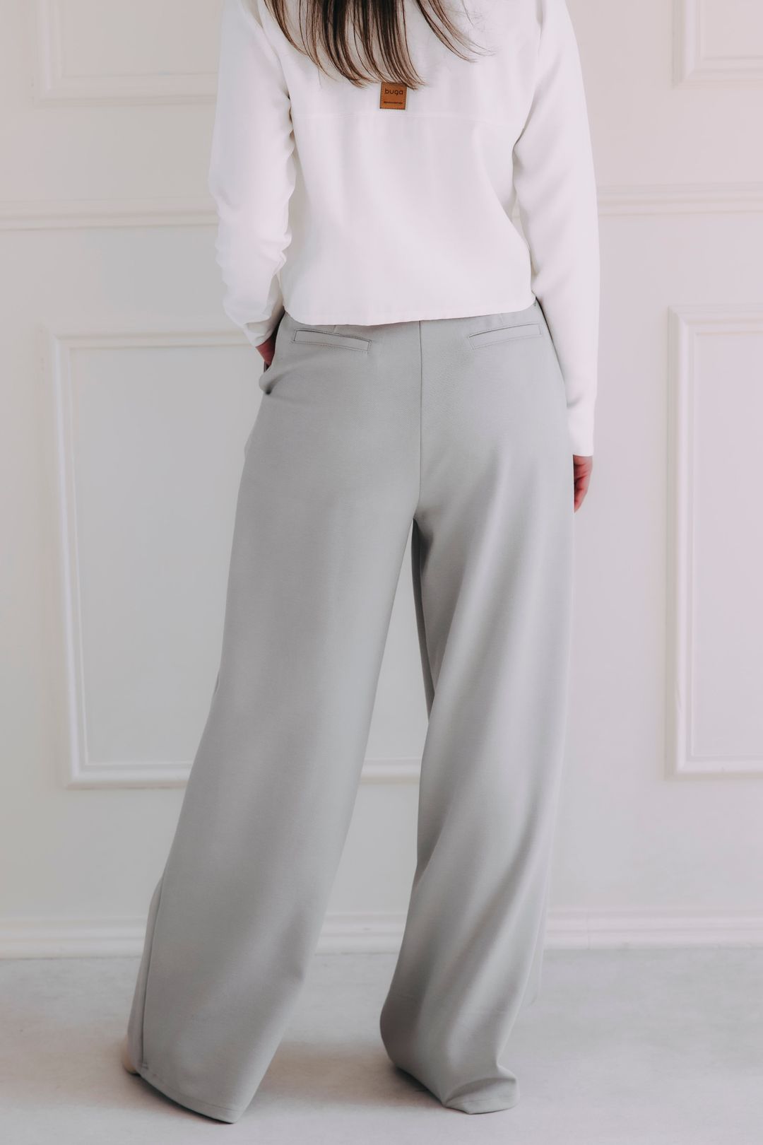 - Strih: Široké nohavice a vysoký pás so skladmi v prednej časti. Aj keď sú pre nás typické nohavice bez zapínania, tieto majú klasický zips a gombík. Prečo? Pretože sme chceli, aby vám perfektne sedeli na postave a pritom sa jednoducho obliekali.