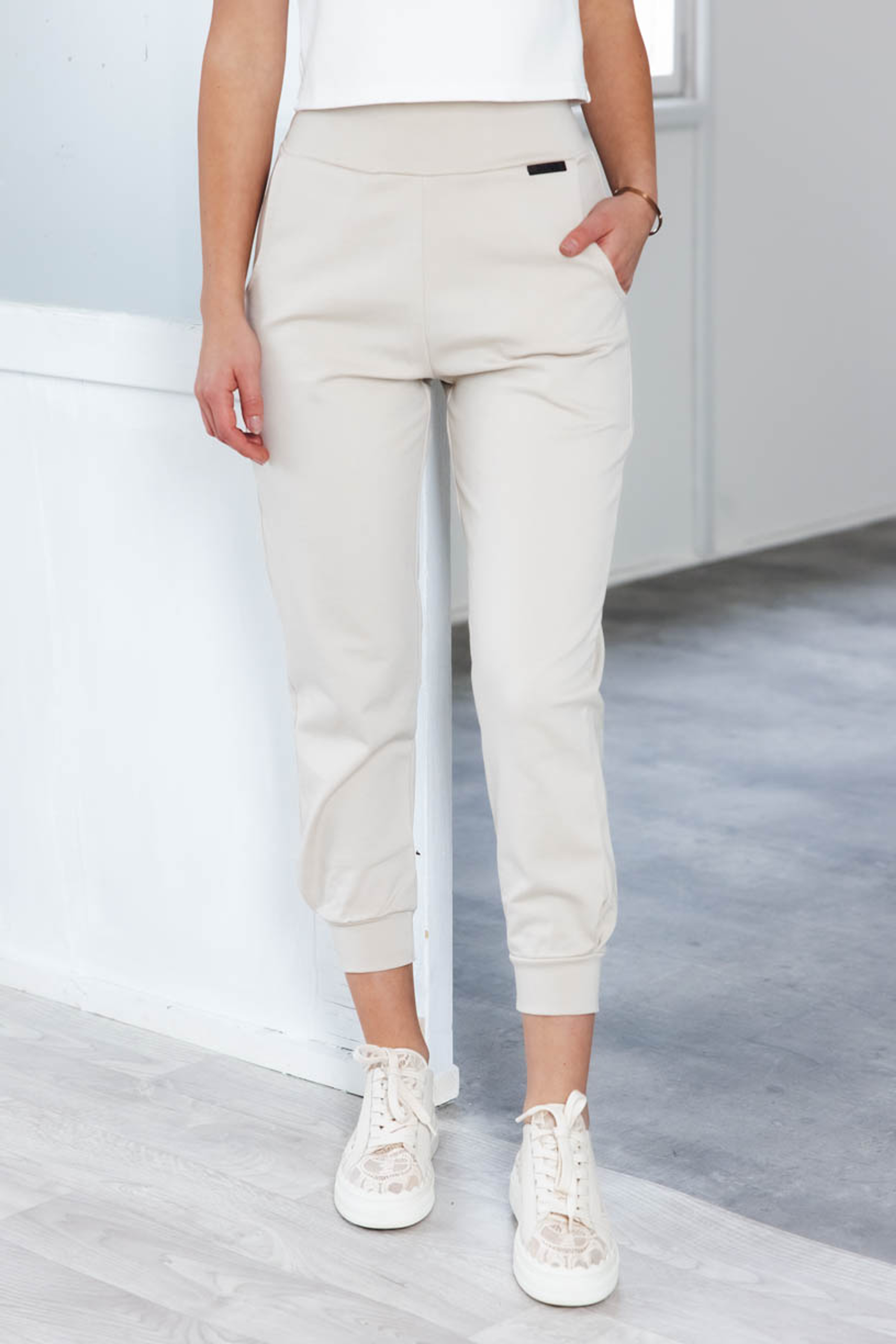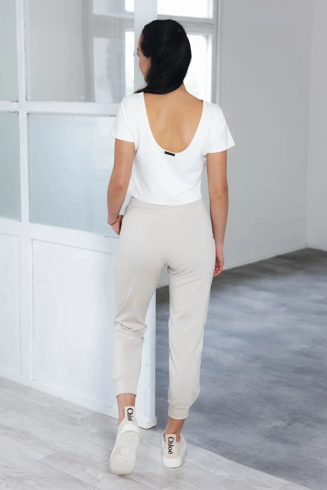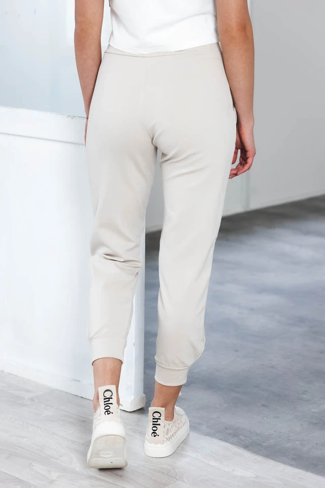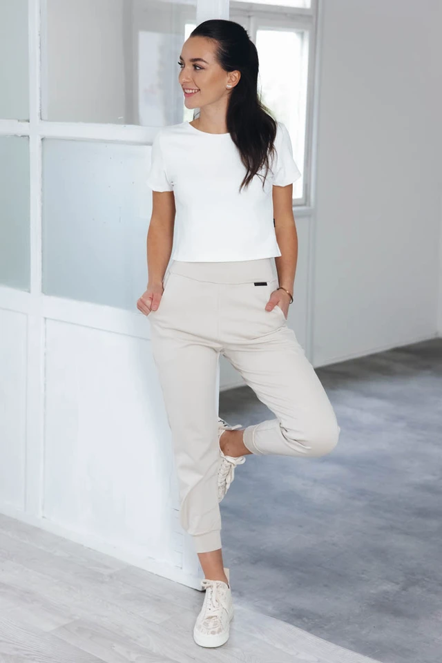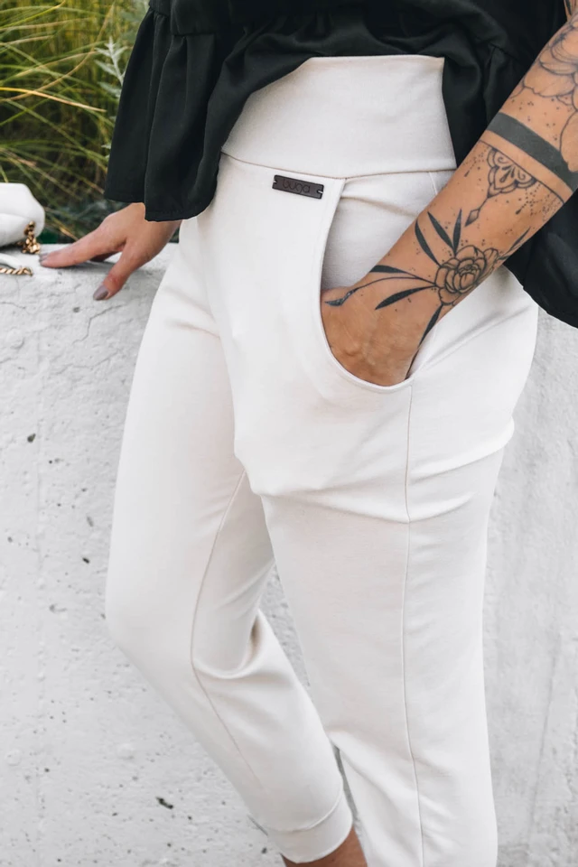 Pri výbere materiálu sme tentokrát siahli po certifikovanej GOTS bavlne s vysokou gramážou s malou prímesou elastanu. Nohavice nikde netlačia, nevyťahujú sa a ani nekrčia, takže vám odpadne starosť s žehlením.