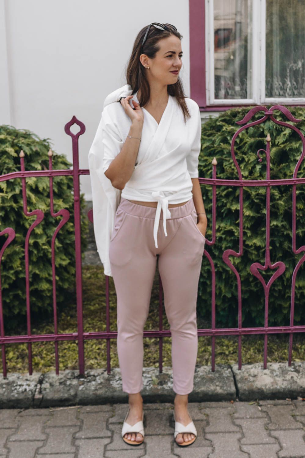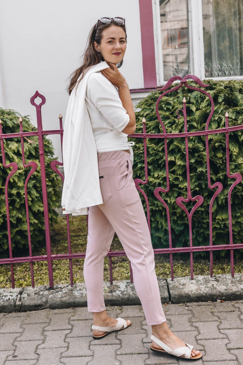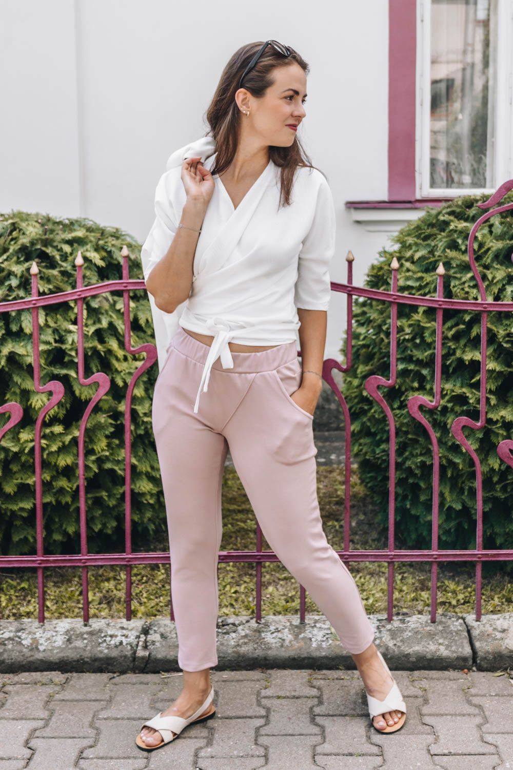 Letnú novinku Elli Short sme ušili z o niečo pevnejšej štrukturovanej látky zo zmesi vyskózy, polyesteru a elastanu. Rovnako ako pôvodný model majú tieto nohavice výborne riešený pás s všitou širokou gumou. Tá sa pekne prispôsobí každému typu postavy. Baví vás hranie sa s ležérnym (ne)zastrkovaním topu alebo košele do nohavíc, alebo kombinovanie s ďalšími kúskami? Potom budú tieto univerzálky presne pre vás.