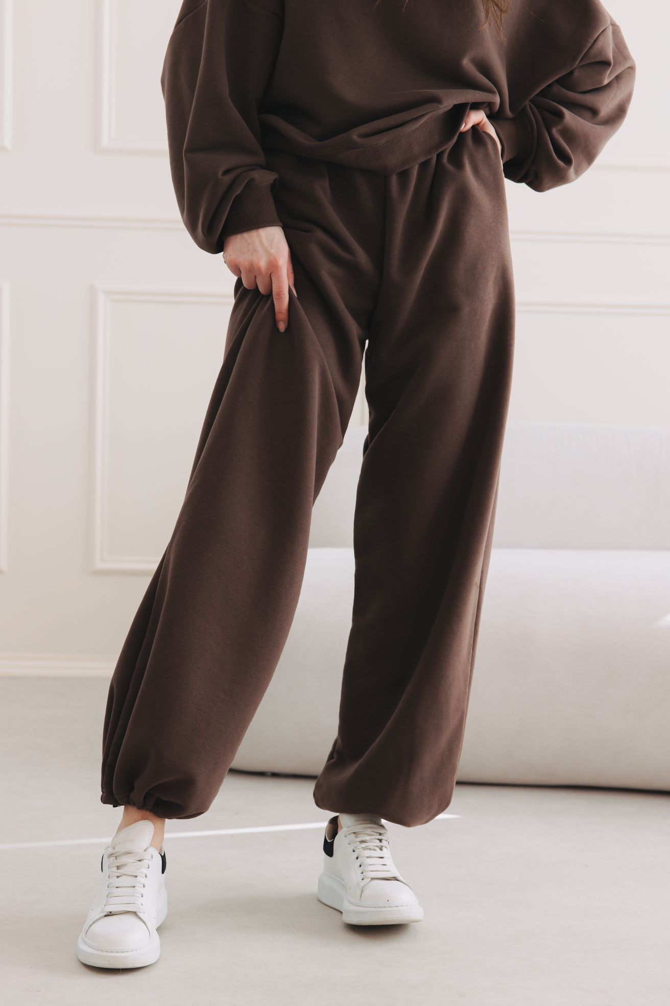 Hnedé tepláky Hawa vo verzii Limited sú trendy kúsok na jarné pochôdzky aj chvíle absolútneho pokoja. Pre dni, kedy sa odmietate rozhodovať medzi štýlom a komfortom a chcete jednoducho oboje.