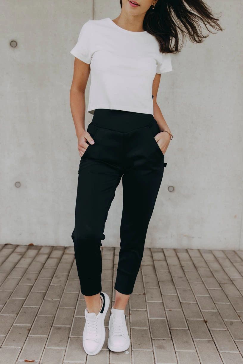 Materiál vyššej gramáže zaistí komfort aj v chladnejších dňoch, prímes polyamidu pružnosť a odolnosť, takže sa v žiadnom mieste nevytiahnu, aj keby ste strávili celý deň posediačky. Aby praktickosť dostala zadosťučinenie, nechýbajú im vrecká vzadu ani v prednej časti.