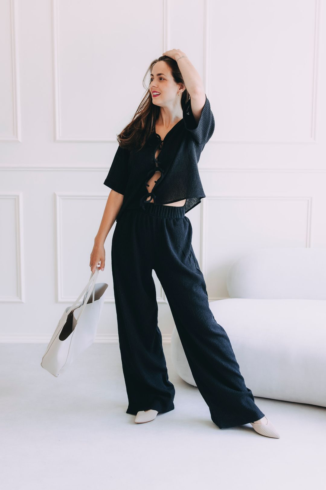 Ideálne na dni, keď nechcete byť ničím zviazané – a napriek tomu chcete vyzerať upravene. A ak hľadáte dokonalý komplet a obľubujete monochromatické trendy, zlaďte nohavice s topom Kamau z rovnakého materiálu. Spolu tvoria duo, ktoré si s letom rozumie aj bez zbytočných slov.