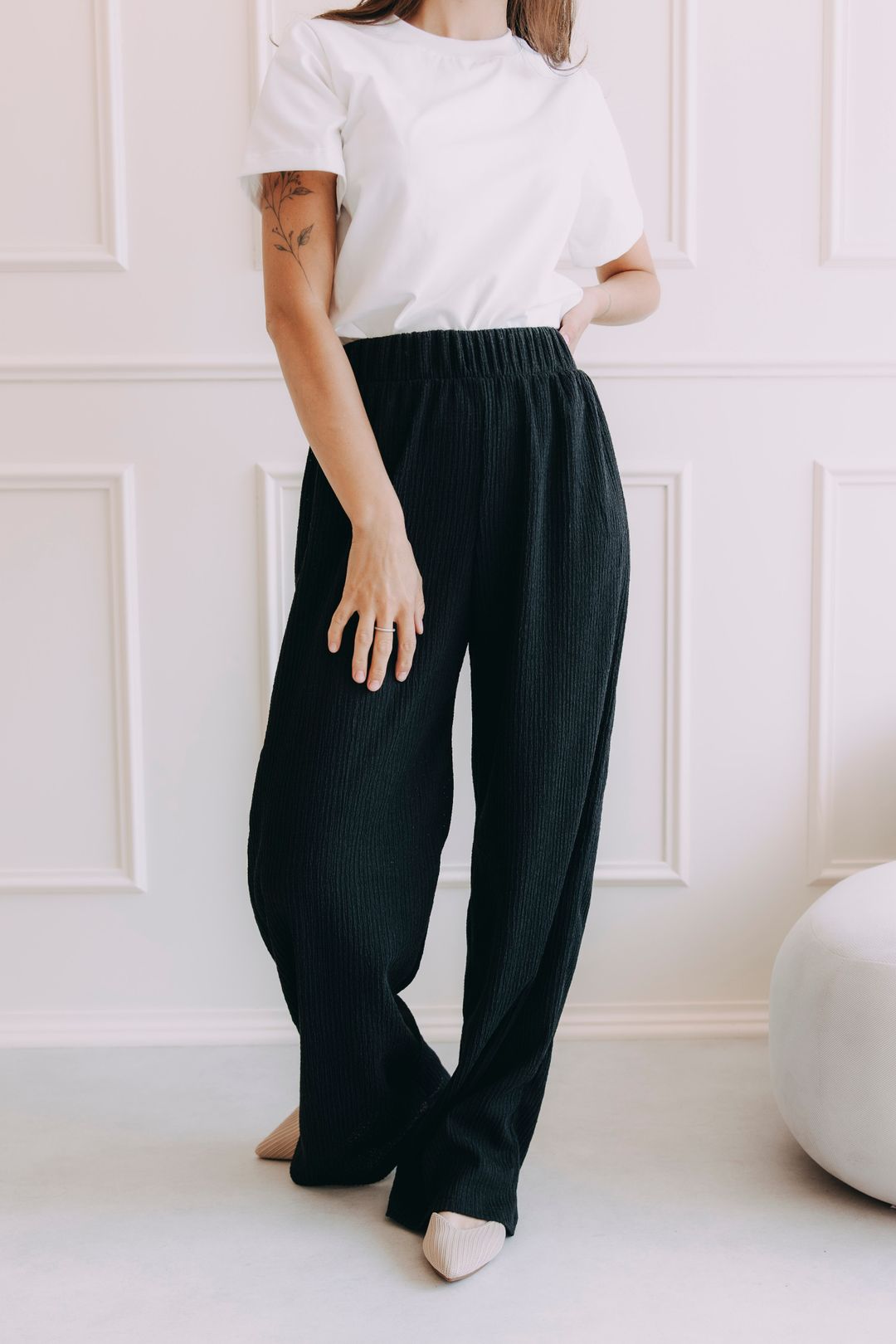 Nohavice to majú v lete ťažké, ale keďže ide o bugácku srdcovku, vieme si poradiť aj s týmto ročným obdobím. Kamau sú ľahké ako vánok a krásne voľné – ani nebudete vedieť, že ich máte na sebe. Materiál s jemným vrúbkovaním dodáva outfitu textúru, hĺbku aj nenápadný šmrnc, guma v páse pohodlie a široké nohavice eleganciu aj priestor na voľný pohyb.
