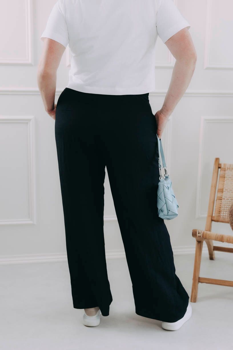 Ušité zo 100 % viskózy vám do šatníka prinášajú vzdušnosť a ľahkosť, takže sú ideálne na horúce letné dni aj pohodové večery. Hladiť vás budú pri každom kroku, kedy si budete pripadať ako bohyňa. Univerzálna čierna sa navyše perfektne zladí s čímkoľvek z vášho šatníka (alebo kufra).