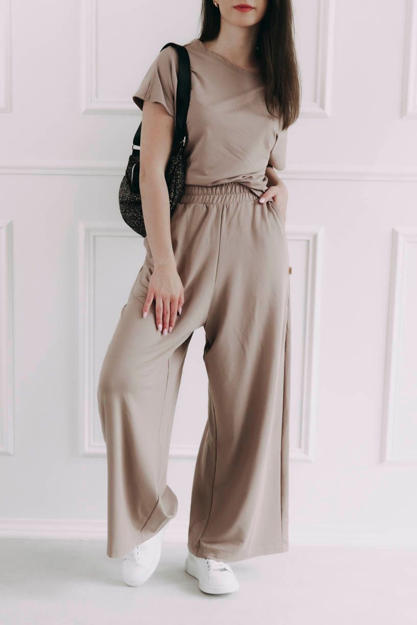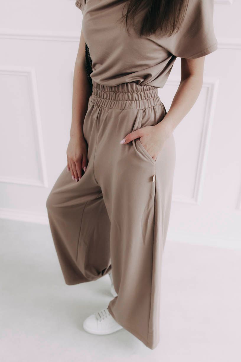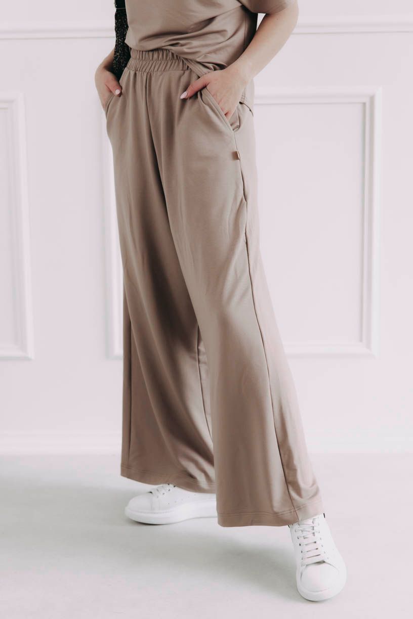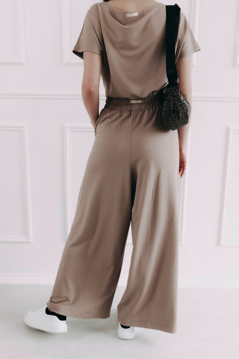 Široké nohavice Meema ako letný rytmus – voľný, plynulý, skrátka taký, ktorý vás nechá byť presne takú, aká chcete byť. Uvoľnené a splývavé nohavice z modalu s lycrou sa pohybujú s vami a prispôsobia sa vašej postave. Vysoký pás so širokou gumou vám dodá komfort, dve bočné vrecká zase potrebnú dávku praktickosti.