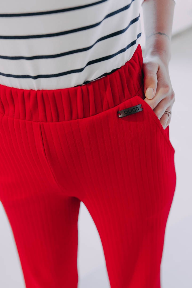 Vrúbkovaná textúra im ešte pridávajú na elegancii. V páse nechýba pohodlná guma a v prednej časti vrecká na drobnosti.