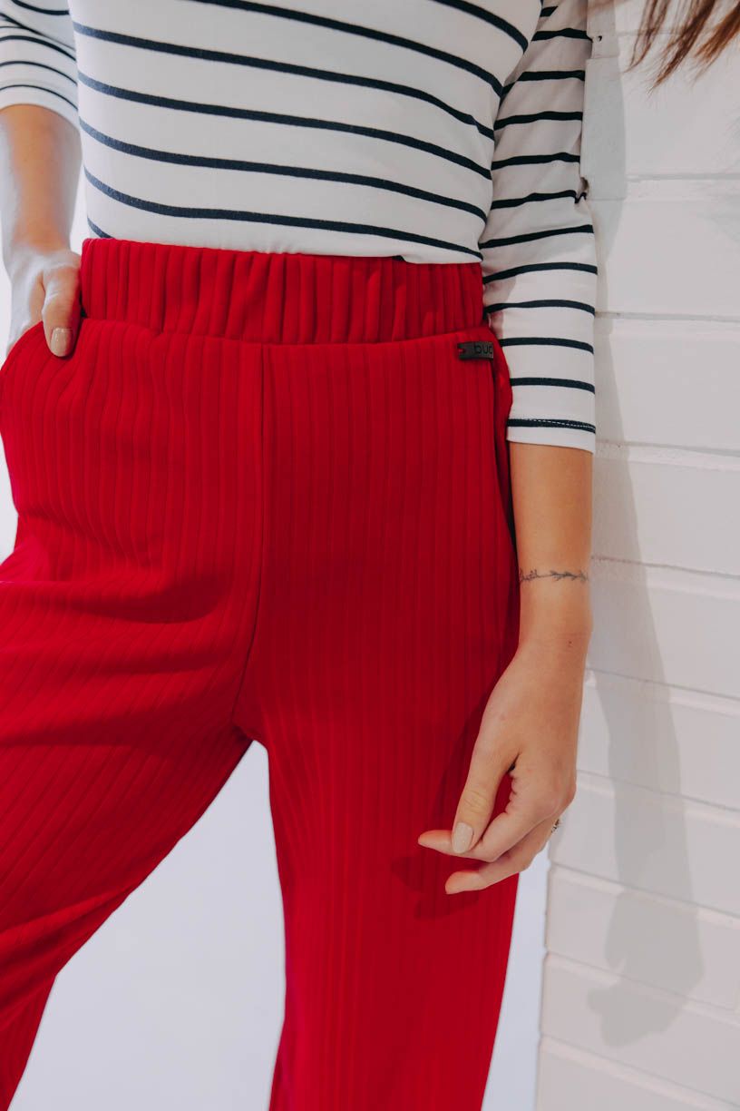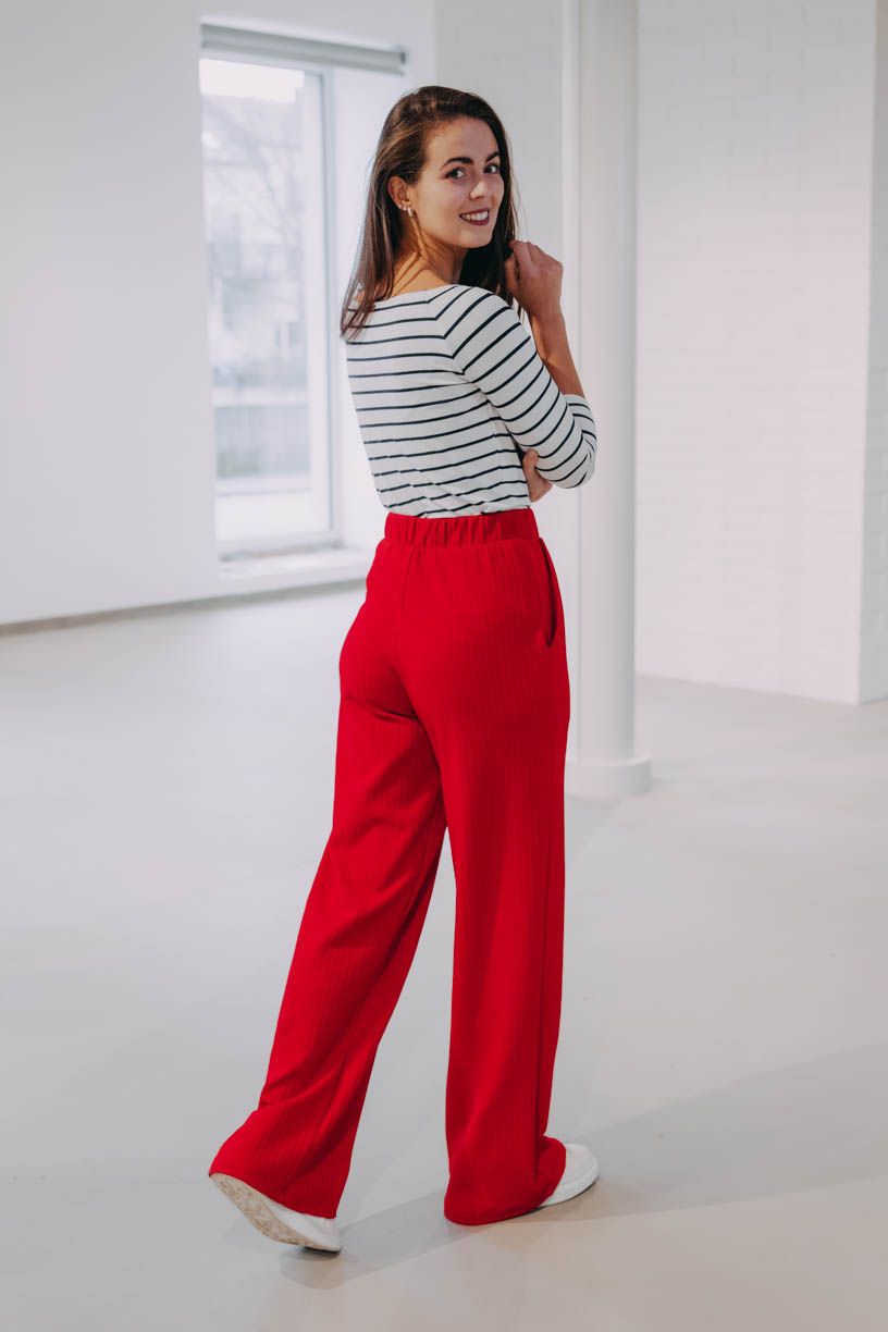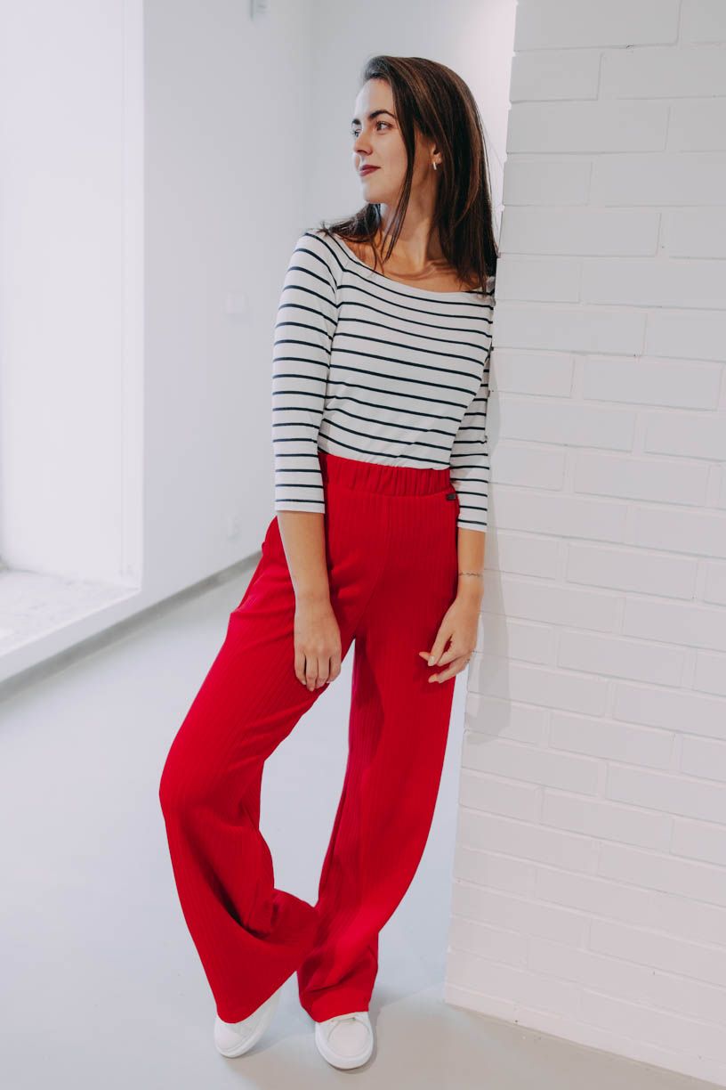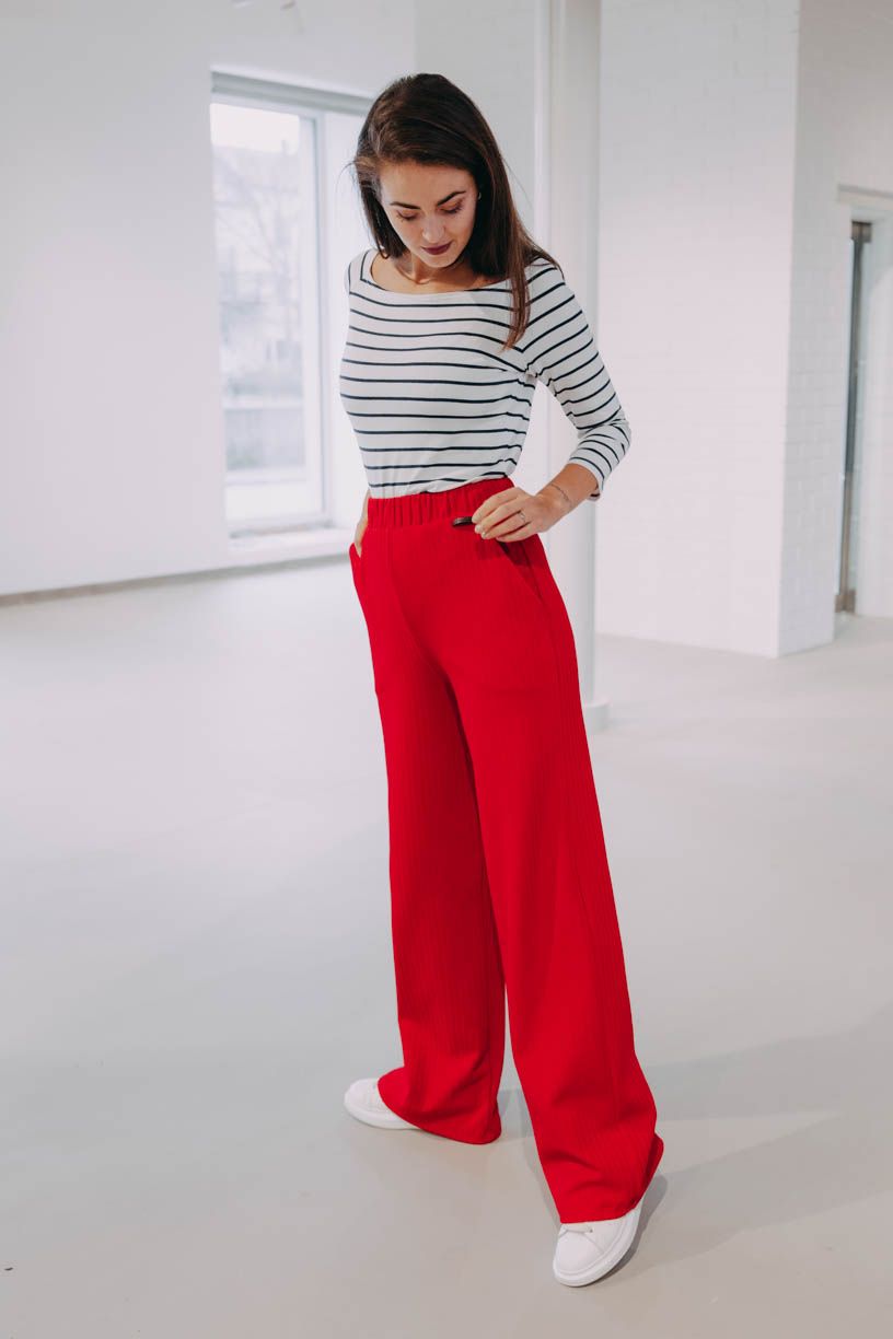 Obľúbené široké nohavice Nakato okorenené vrúbkovanou textúrou posúvajú nosenie nohavíc o ďalší level.
