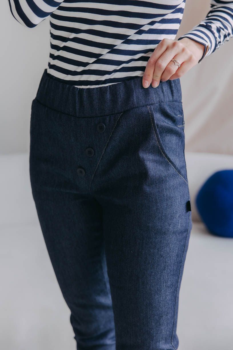 Našou najdôležitejšou podmienkou bolo pohodlie, čomu sme prispôsobili celý návrh nohavíc – žiadny zips plus rafinovane všitá široká guma v páse, aby vás nič netlačilo. Pár malých vreciek na drobnosti dopĺňajú ozdobné gombíky.