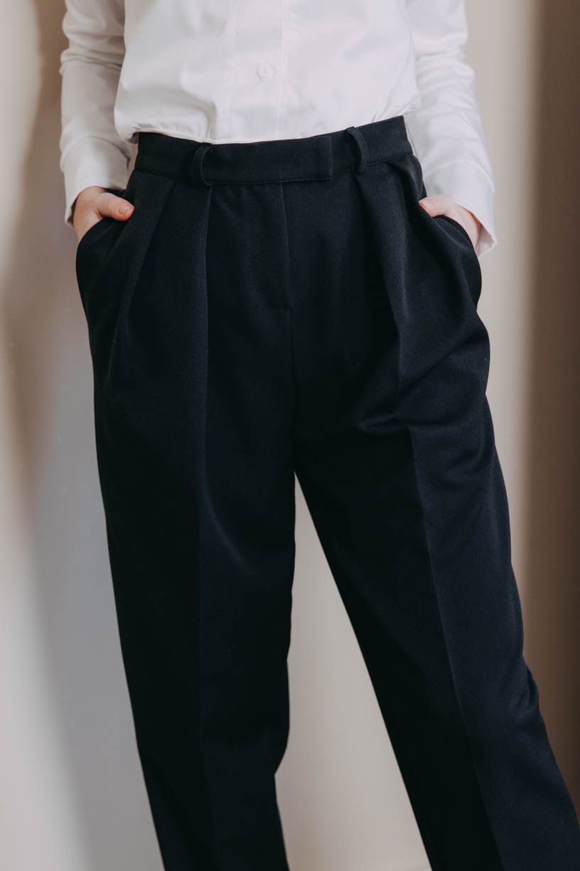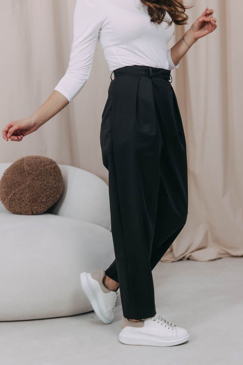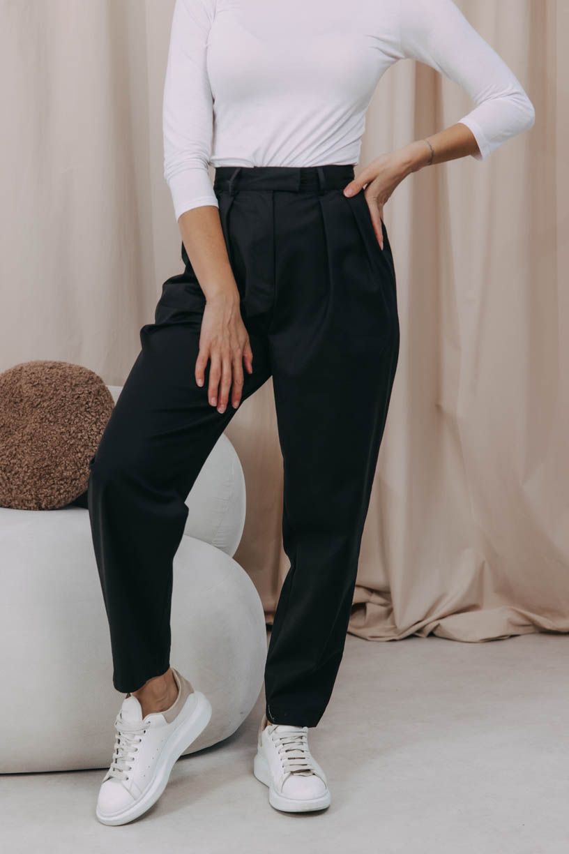 Pevné nohavice Sanyu sú bez gumy, na zips a patentku a so širším mrkvovým strihom. Perfektne padnú všetkým rebelkám, ktoré sa vyžívajú v pánskom štýle obliekania.