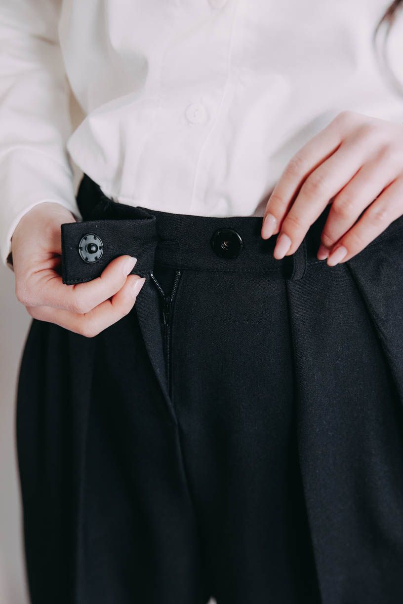 Buga a zips na nohaviciach? Už je to tak. Zvlášť pri outfitoch s mužským nádychom je zips skrátka takou nevyhnutnosťou. Nebojte sa však nič, je perfektne ukrytý a „posichrovaný“ nenápadnou patentkou.