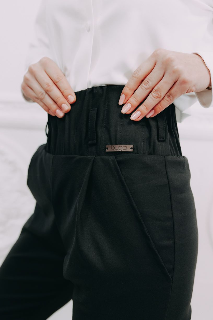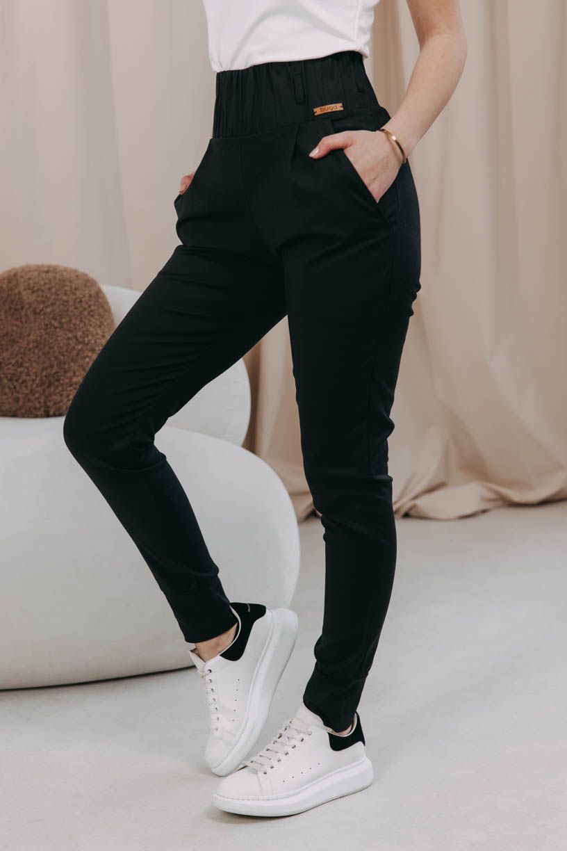 Shara hrajú prím v nohavicovej elegancii. Vysoký pás so širokou a efektne prešívanou gumou krásne zdôrazní krivky a budete s v nich cítiť extrémne príjemne.