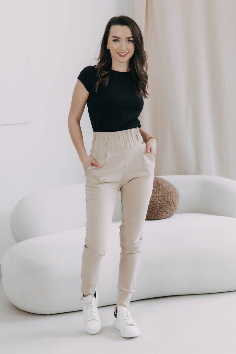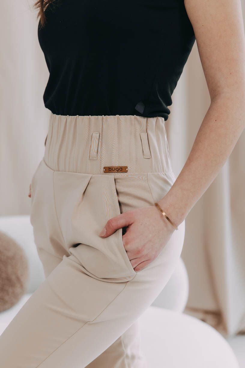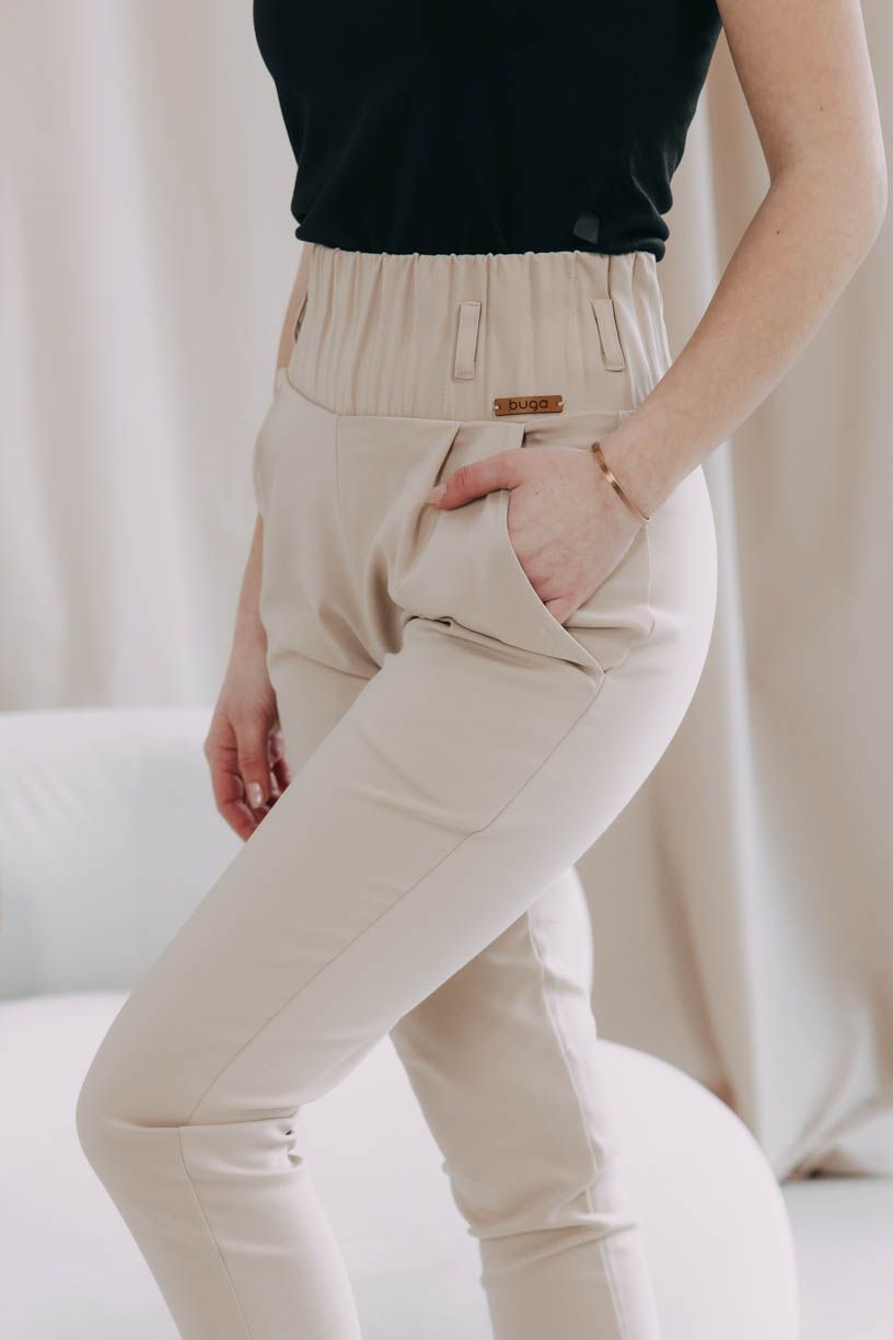 Shara hrajú prím v nohavicovej elegancii. Vysoký pás so širokou a efektne prešívanou gumou krásne zdôrazní krivky a budete s v nich cítiť extrémne príjemne.