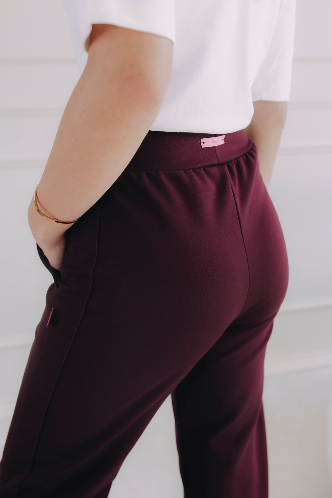 Vyšší pás, rovný strih nohavíc a bordó farbička. Nohavice Zen Thin sú to pravé pre vaše módne kombinovanie. A sú neskutočne pohodlné.